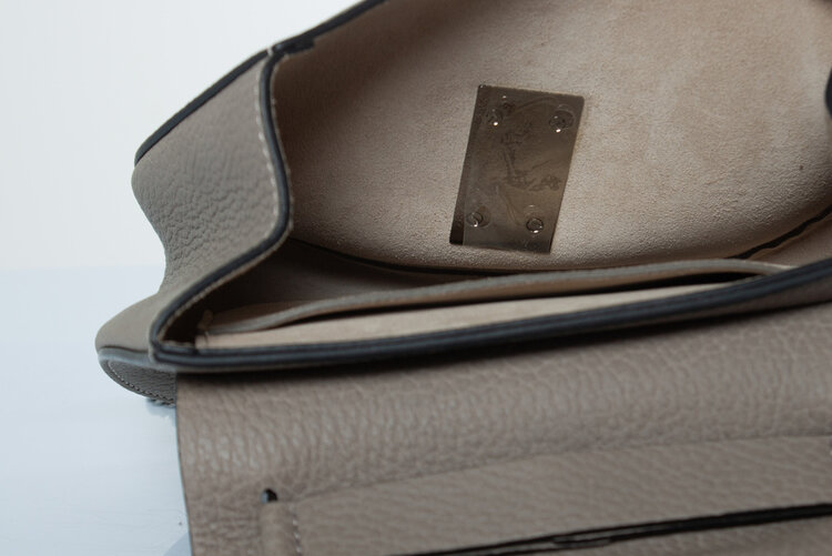 MEASUREMENTS: height 17 cm, width 19 cm, depth cm, height handle 6 cm, length strap 106 cm