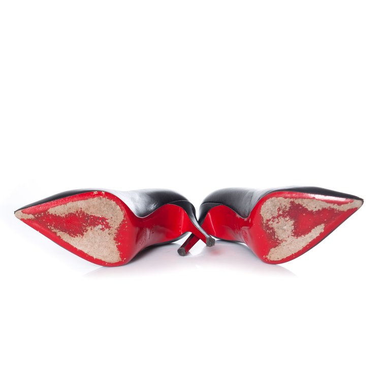 Christian Louboutin, Loubi Croissant Satin Clutch in Green. This item has been used once and is in mint condition. This item has a shoe shaped snap clasp closure. One internal patch pocket. Red cotton lining. Gold coloured metal hardware. Made in Italy.