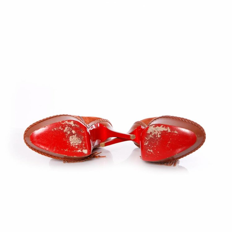 Christian Louboutin, Brown suede/leather platform shoot with tassel in size 40.5.