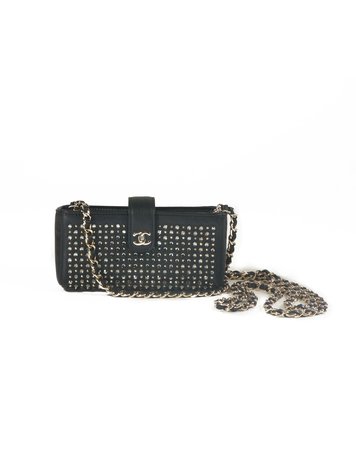 Chanel, Phone bag in grey. golden hardware with grey and golden rhinestones and the famous linked chain. This piece is new -unworn. It comes with original certificate, box, dust bag and receipt. Highly exclusive, limited and rare to find.