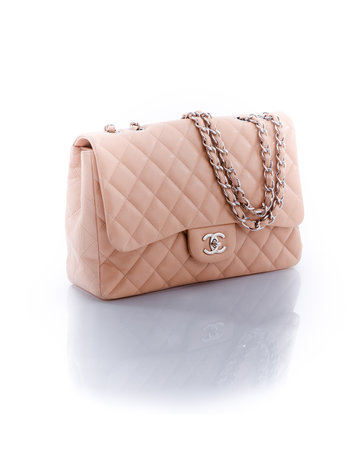 Chanel 2.55 Jumbo single flap bag in Nude. Bag has been used but in good condition, slightly scratched on the front. The back has a light discolouration.