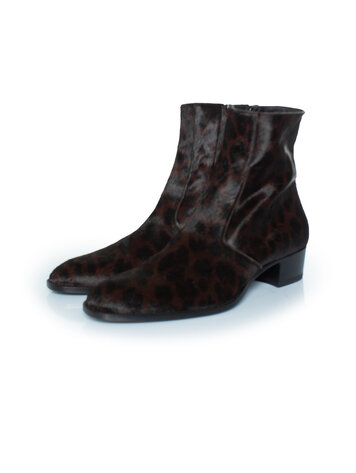 Saint Laurent, Leopard print ponyskin boots. The item is new - unworn