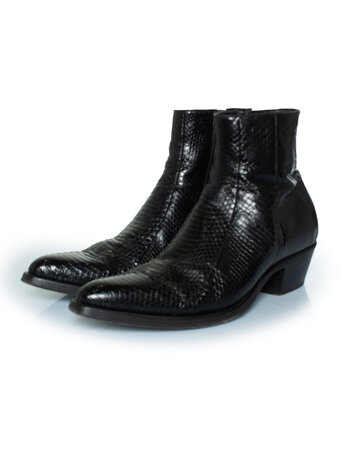 Saint Laurent, SS19 snakeskin dakota ankle boots in black. The item is in very good condition.
