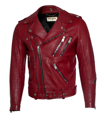 Saint Laurent, Red leather multi zip jacket 2013. The item is in good condition.