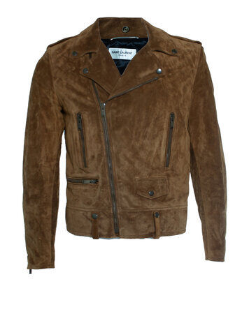 Saint Laurent, 2018 kaki suede biker jacket. The item is in very good condition.