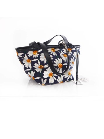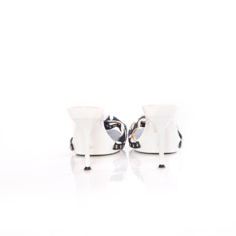 D&G, blue slide sandal with white daisy flowers in size 39. This product has been worn only once and is in excellent condition. The sandals come with the original box and dustbag. This product also has a matching handbag.
