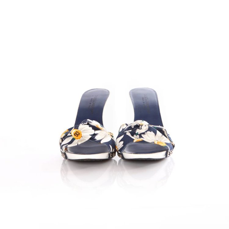 D&G, blue slide sandal with white daisy flowers in size 39.