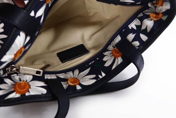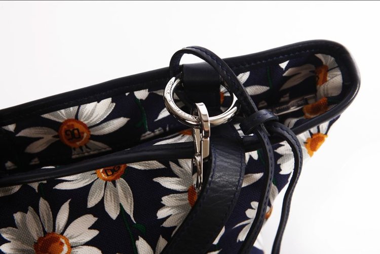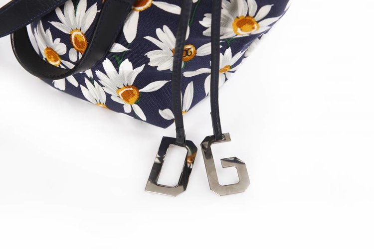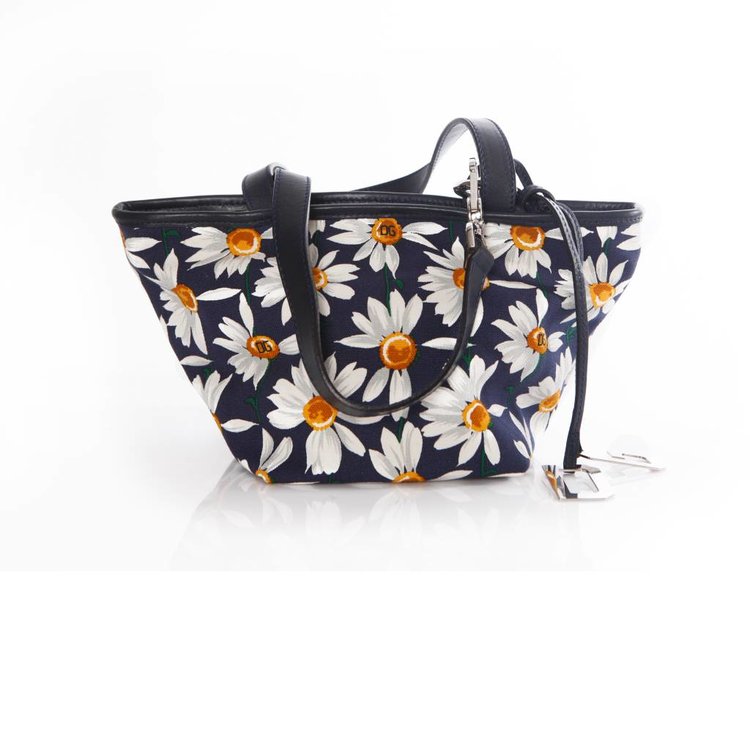 D&G, blue slide sandal with white daisy flowers in size 39. This product has been worn only once and is in excellent condition. The sandals come with the original box and dustbag. This product also has a matching handbag.