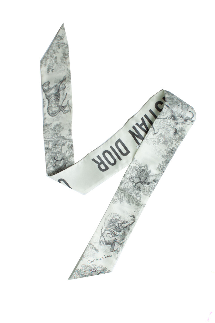 • Dior, Mitzah scarf in grey with Toile de Jouy sauvage print. The item is new in box.