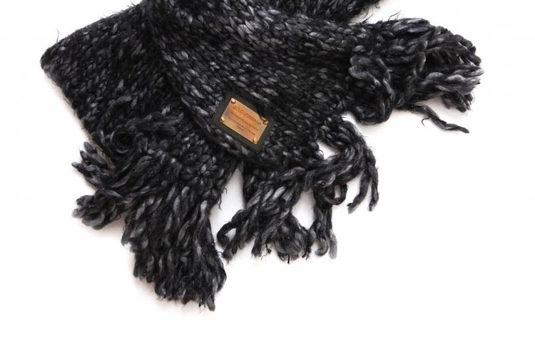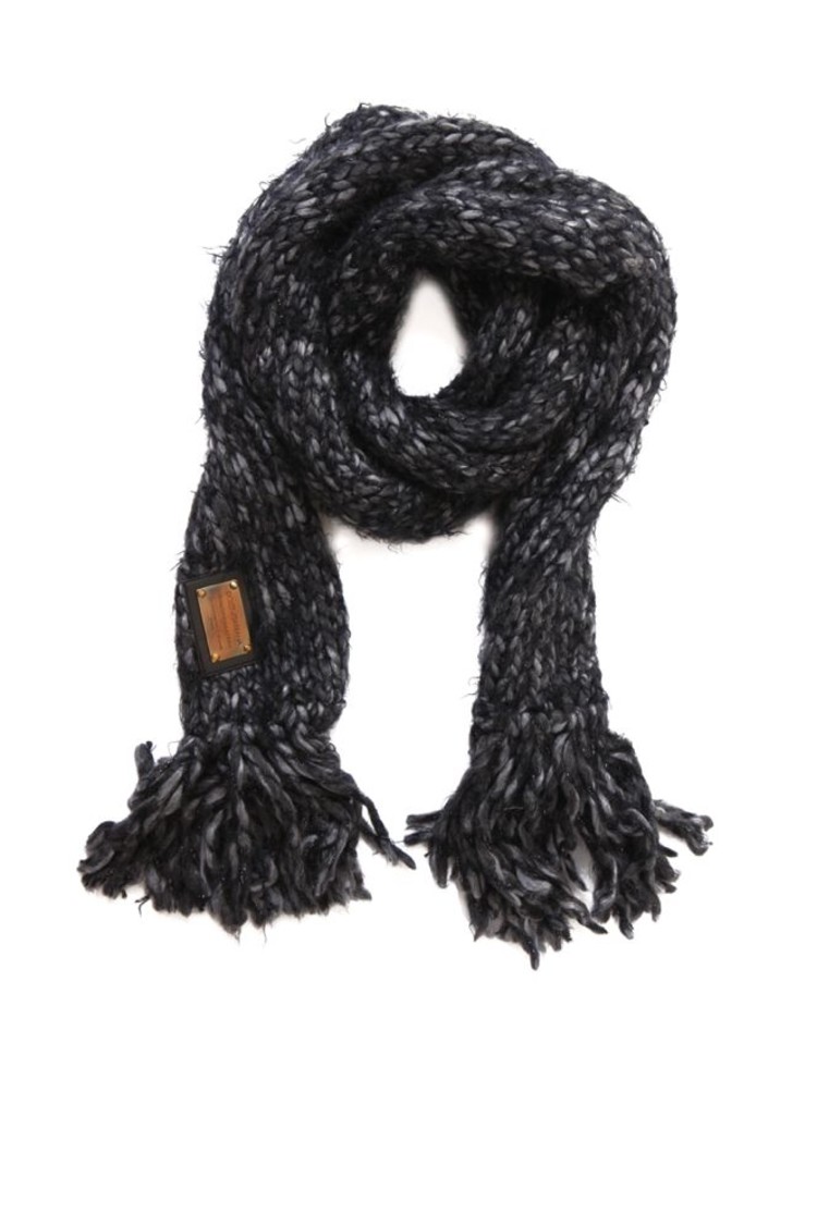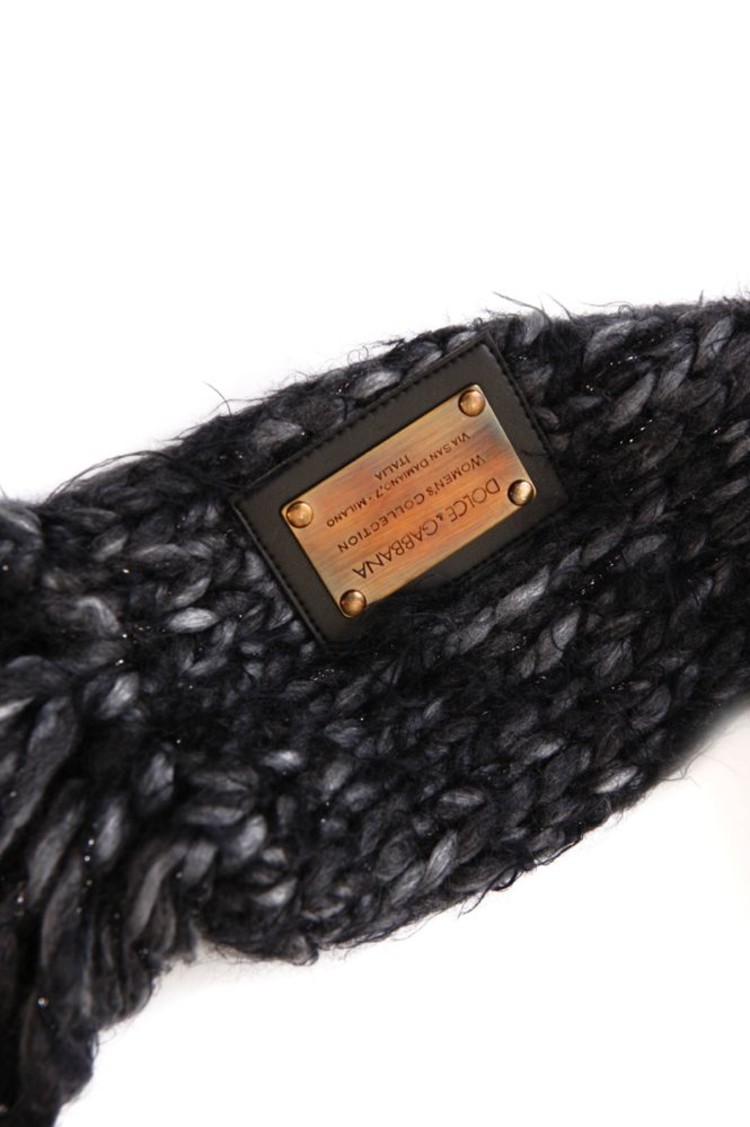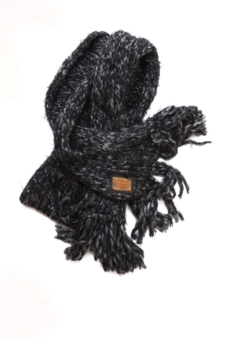 • Dolce & Gabbana, Grey knitted scarf with lurex and fringes. This product is new/has never been worn.