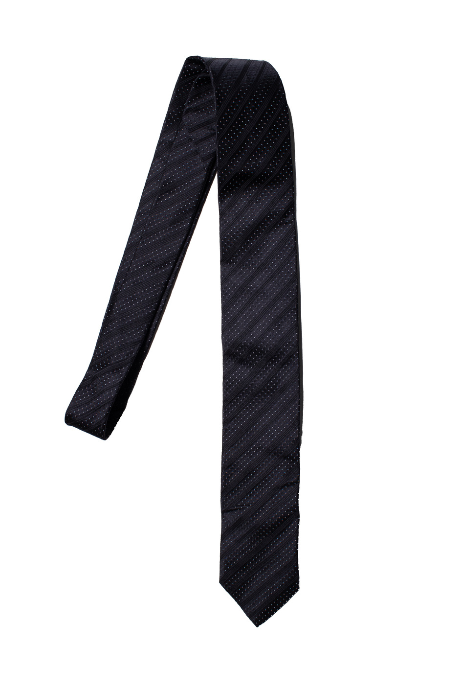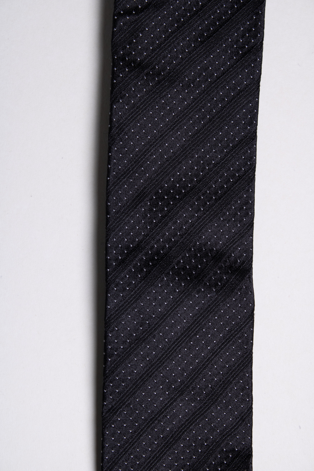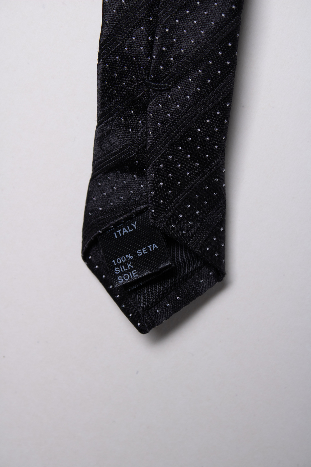 • Dolce & Gabbana, black diagonal striped tie with dots. The item is in very good condition.