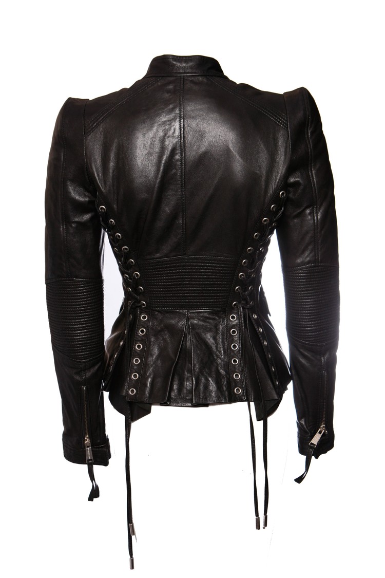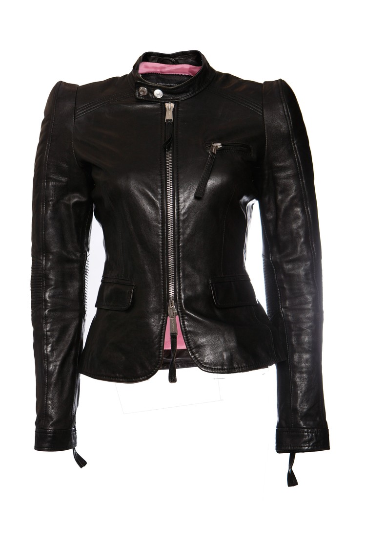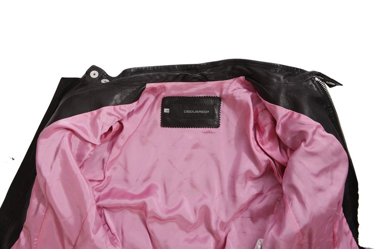 • Dsquared2, black leather biker with laces on the back. This product has been used only a few times and is in mint condition.