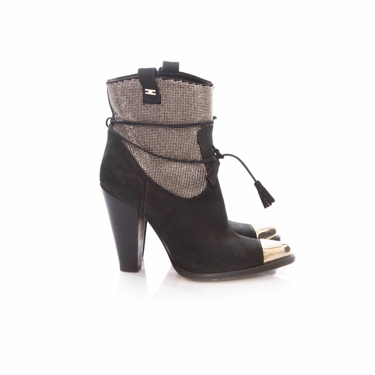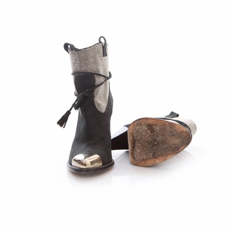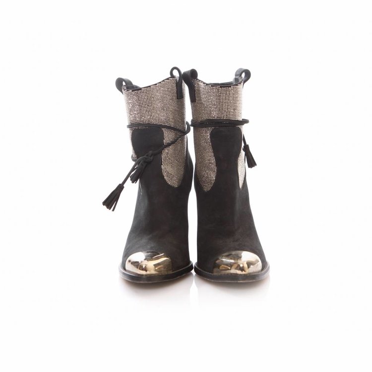 Elisabetta Franchi, black suede boots with stones and silver toe in size 36.