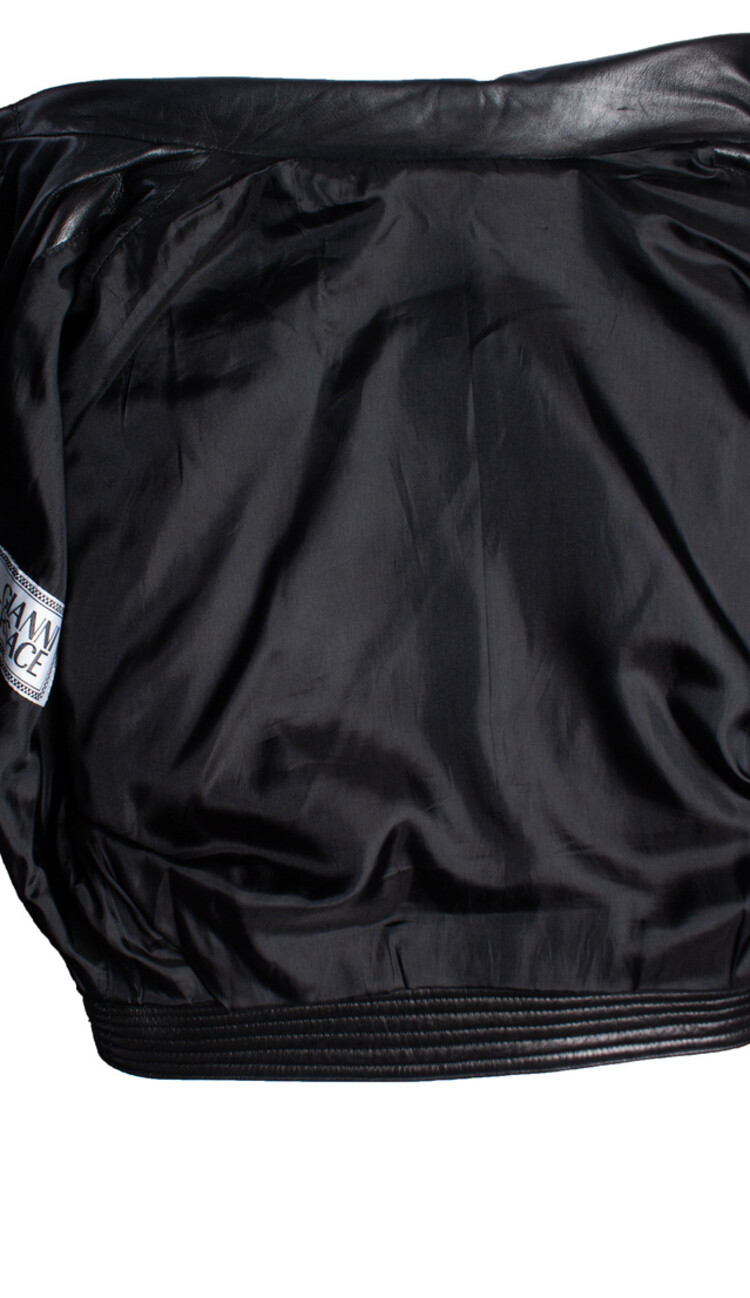 • Gianni Versace, Leather biker jacket with safety pins. The item is in good condition. Leather has small damages on the leather (not from wearing)