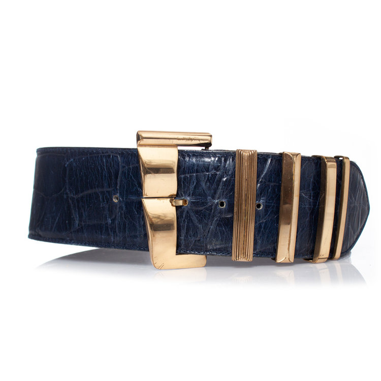 Gianni Versace, Blue croc stamped leather waist belt