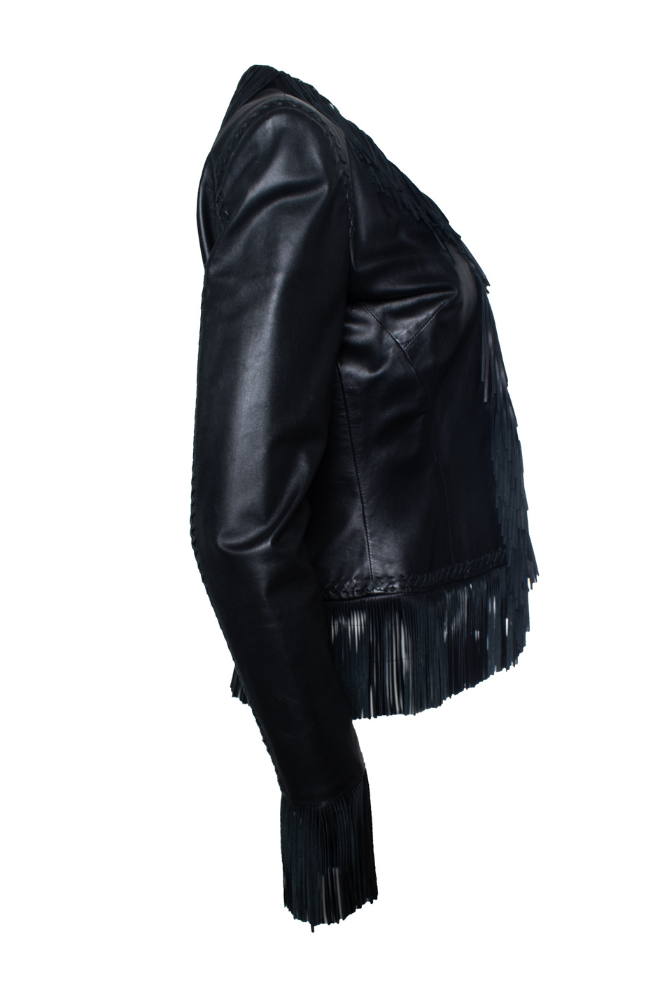 MEASUREMENTS: length 51 cm, width 46 cm, waist 41 cm, shoulder width 42 cm, sleeve length 57 cm (ex fringes)