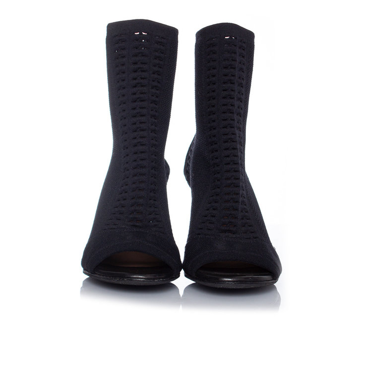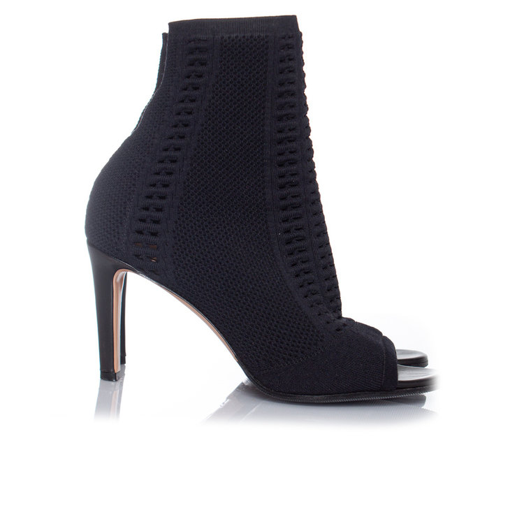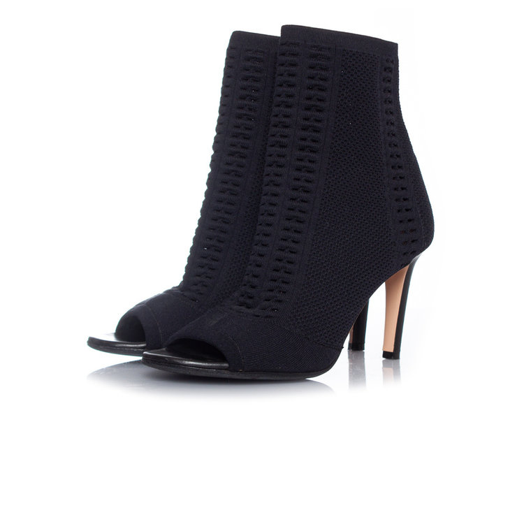 • Gianvito Rossi, Stretch peep toe ankle boots in black. The item is in very good condition. Sole has been reinforced. The item comes with dustbag.
