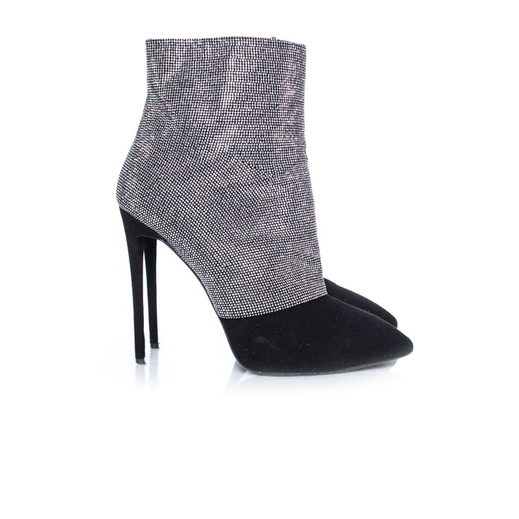 • Giuseppe Zanotti, crystal mesh ankle boots. Featuring an almond toe, a side zip fastening and a high stiletto heel. This piece has been worn once or twice and is in very good condition. Comes with the original dustbag.