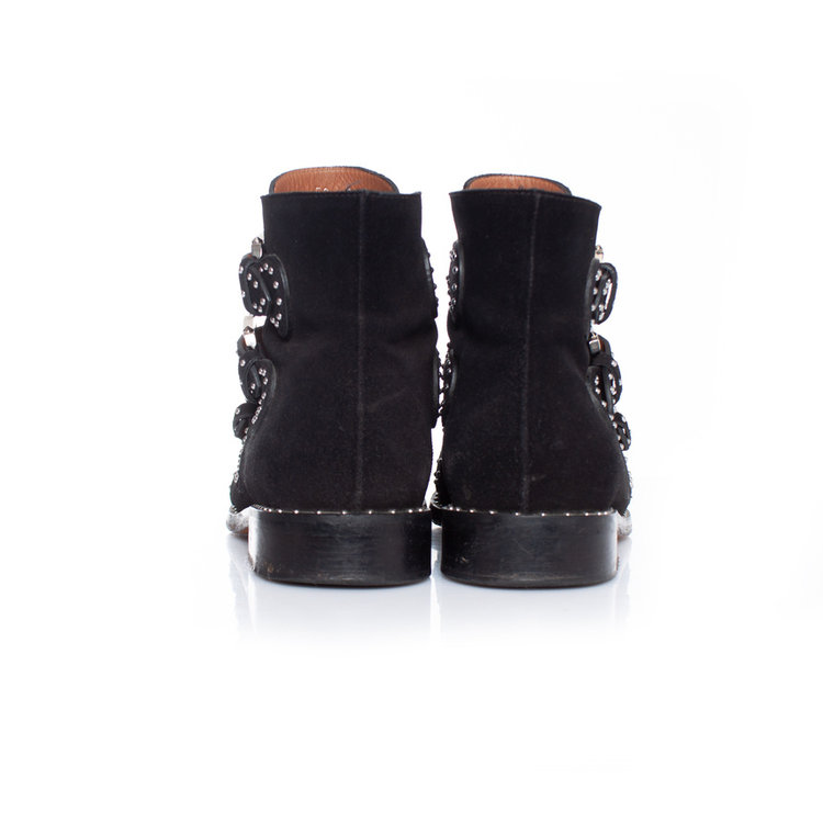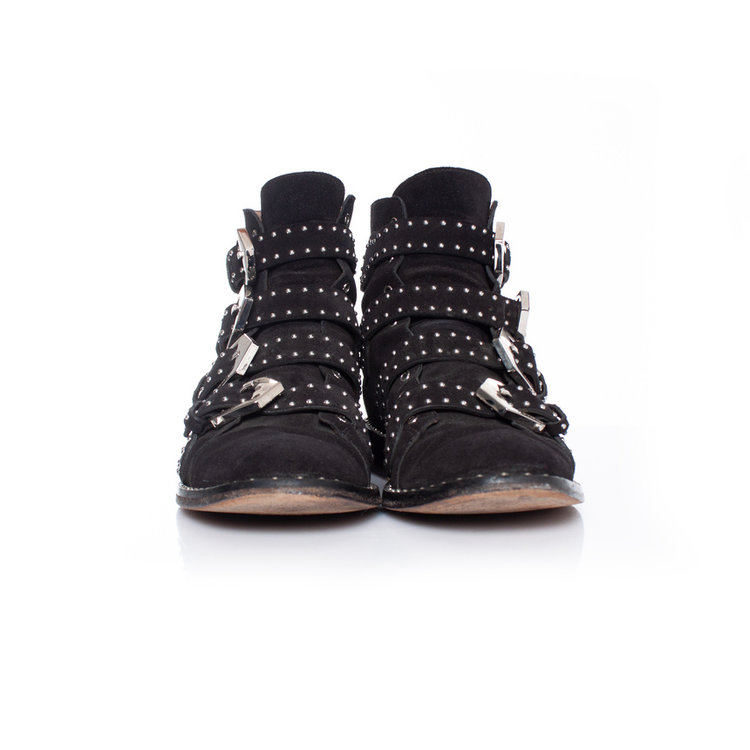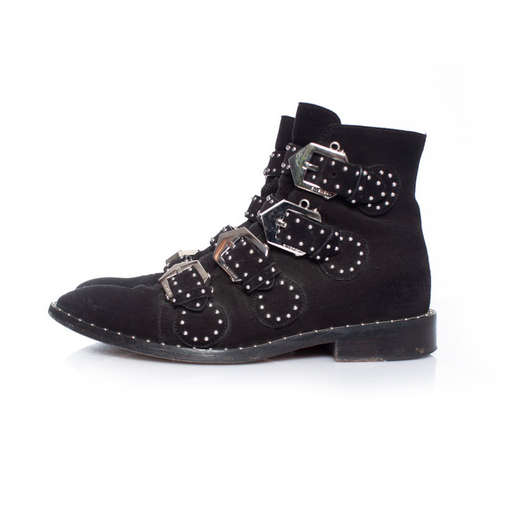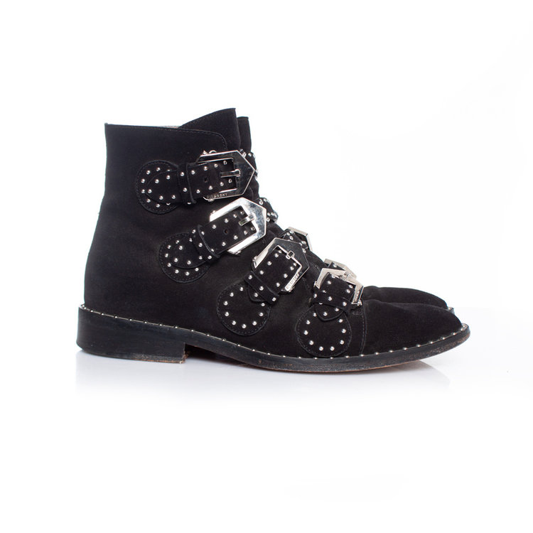 • Givenchy, black studded buckled boots. The item is in good condition.