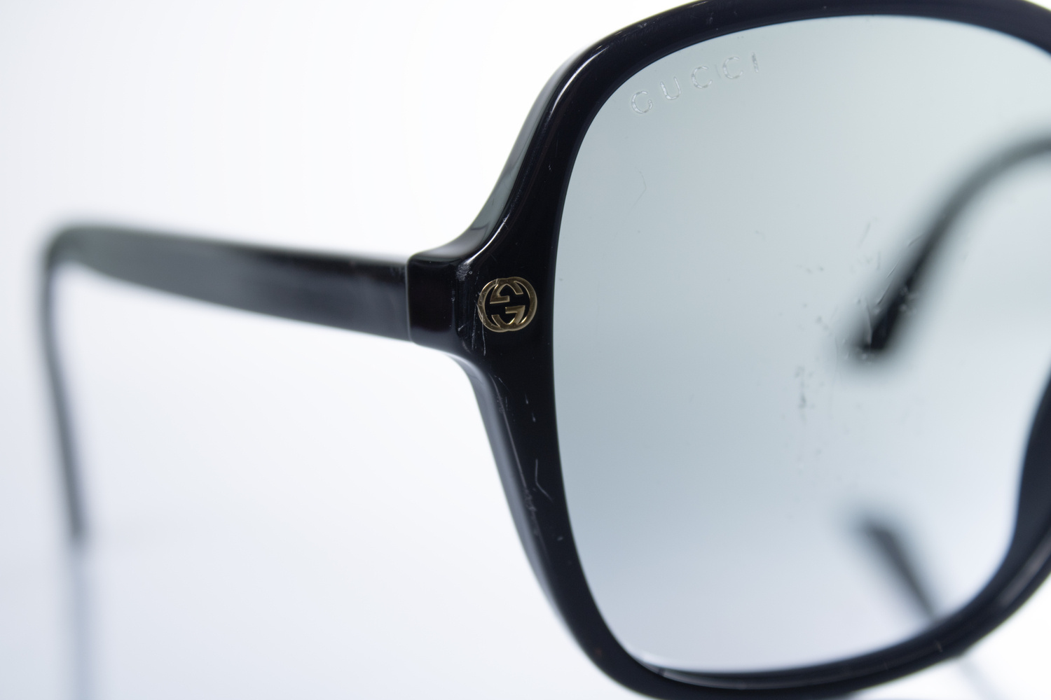 • Gucci, black oversized sunglasses. The item has scratches on frame and lenses.