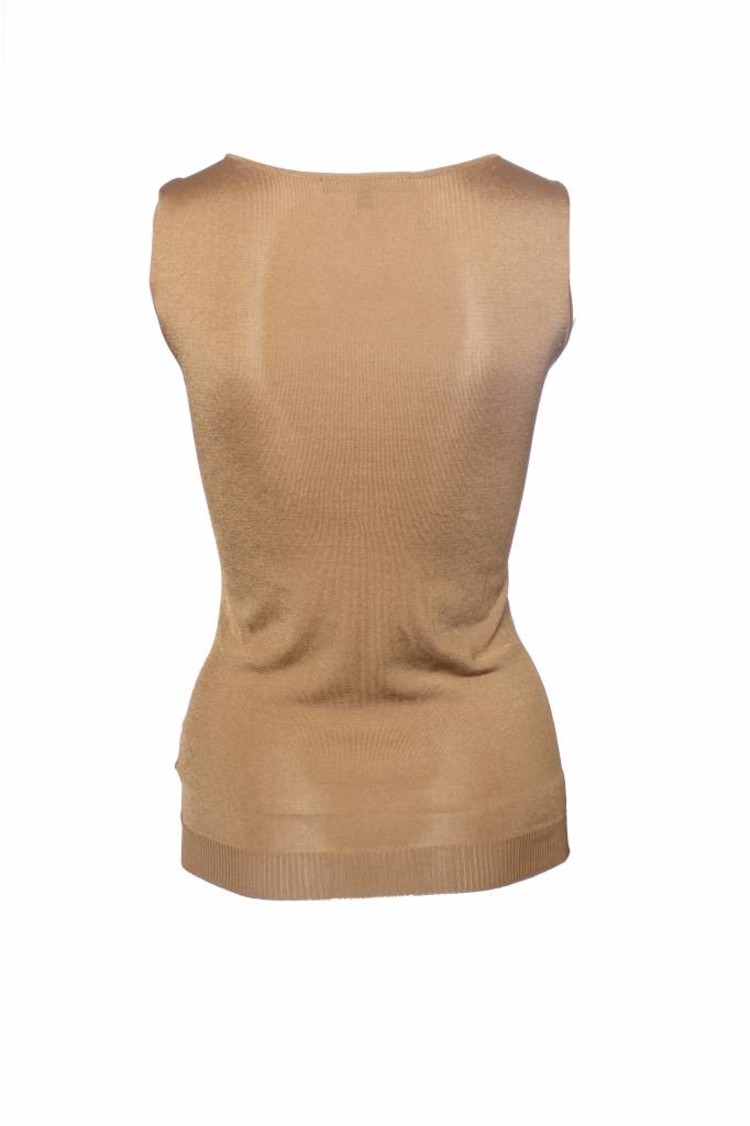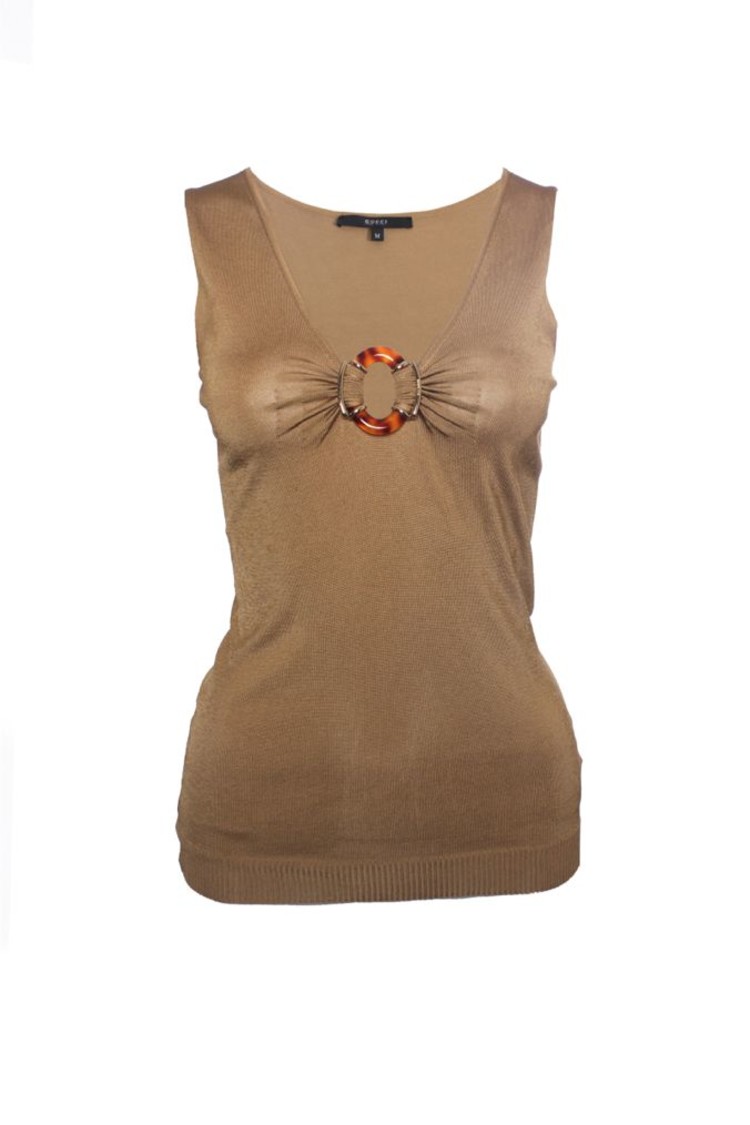 Gucci, navy blue colored stretch top with horsebit ornament in gold.