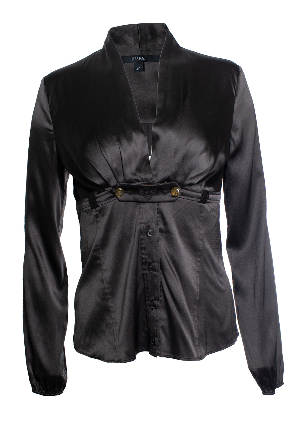 Gucci, Hysteria dark brown silk blouse. The item is in very good condition.