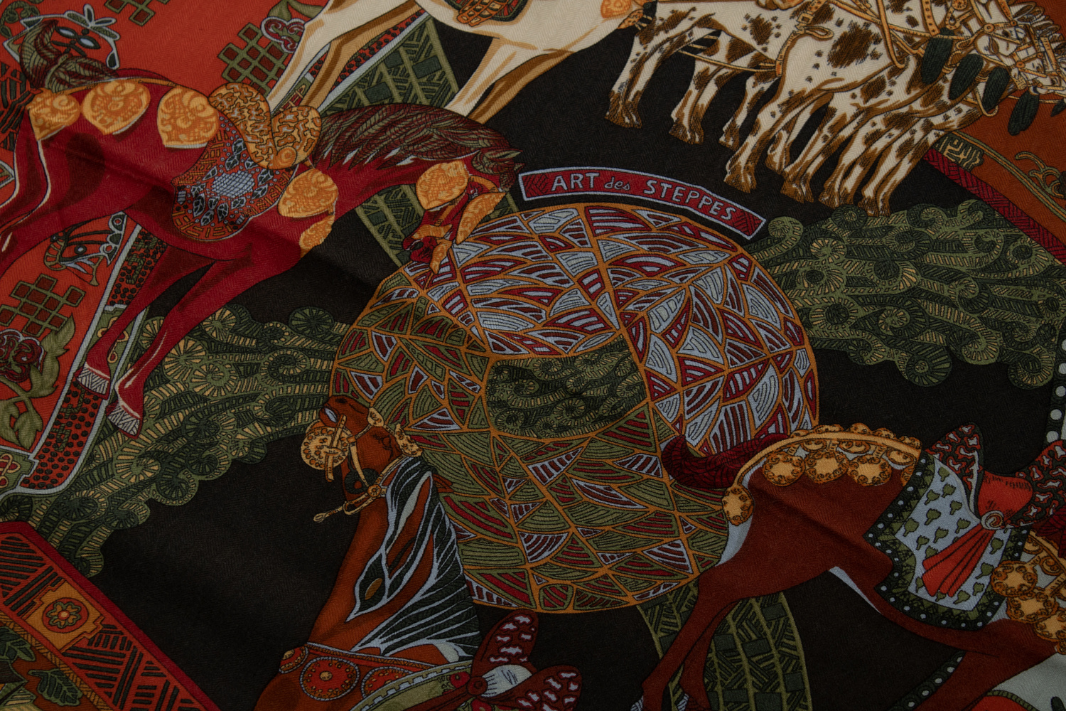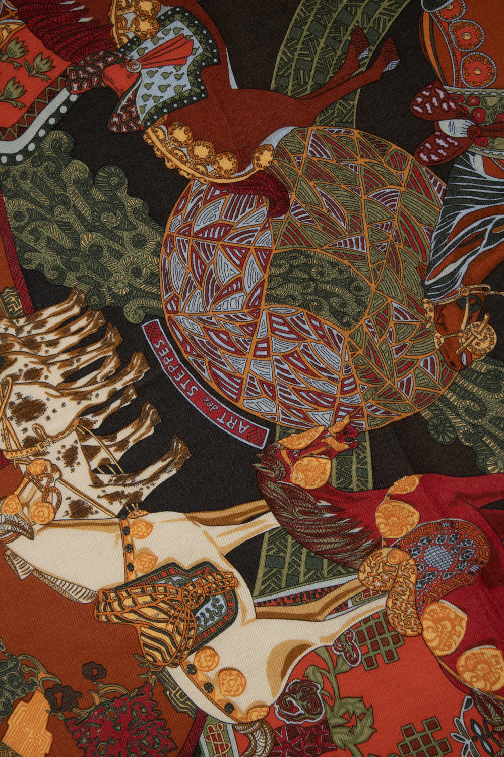 Hermes, Art des Steppes cashmere scarf in red