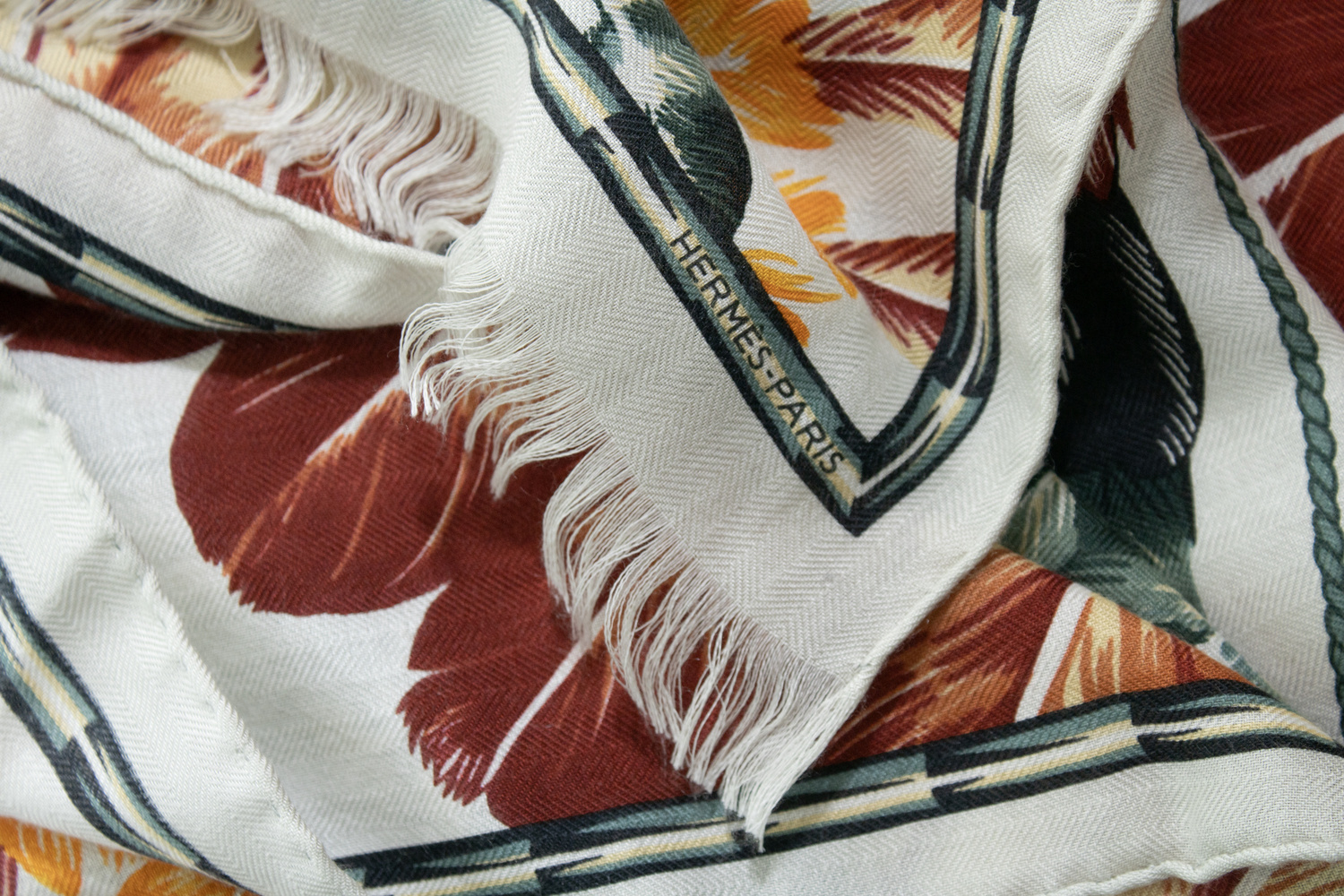 • Hermes, BRAZIL cashmere and silk scarf. The item is in very good condition.
