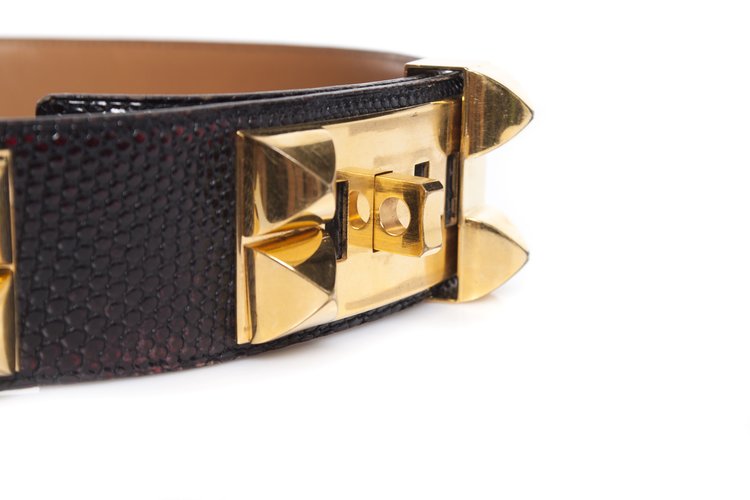 Hermes, Collier de Chien in black with burgundy lizard. The item has scratches on the hardware and the sides are damaged. otherwise the item is still in good condition.