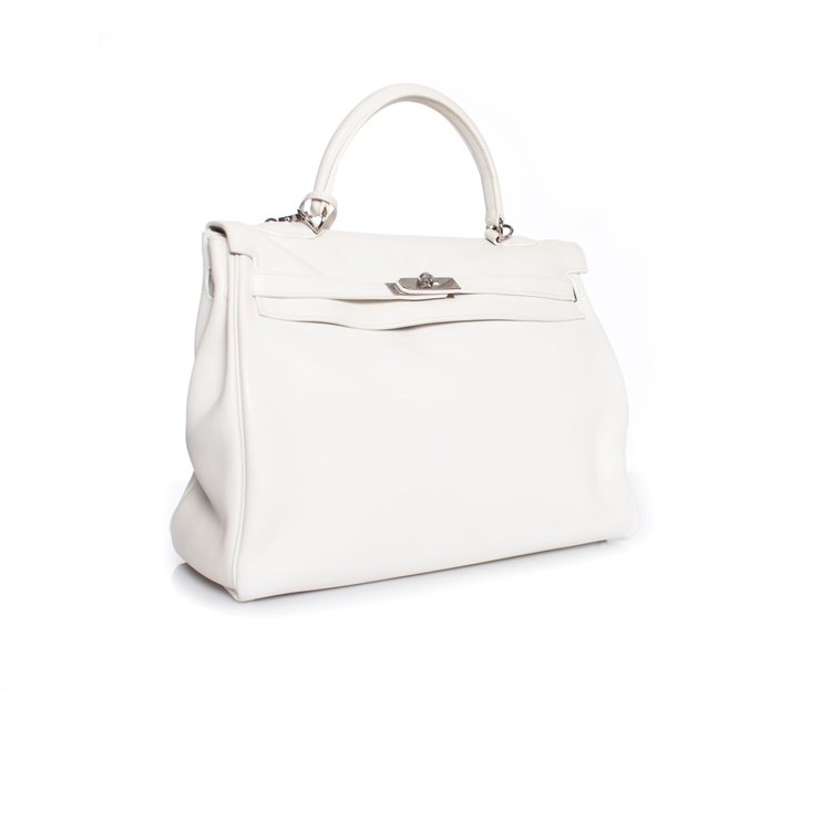 Hermes Kelly 35 Retourne White with Palladium hardware.