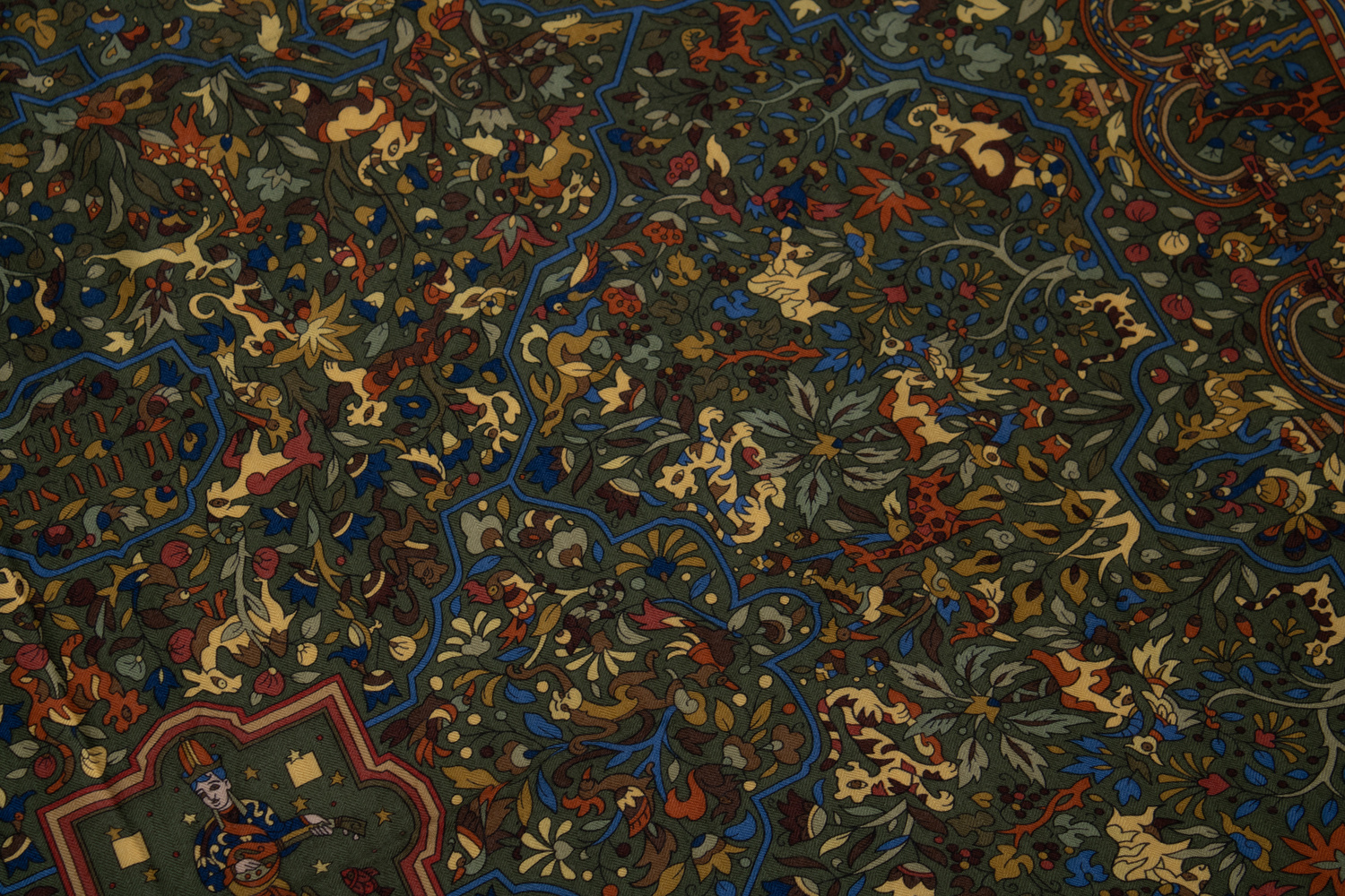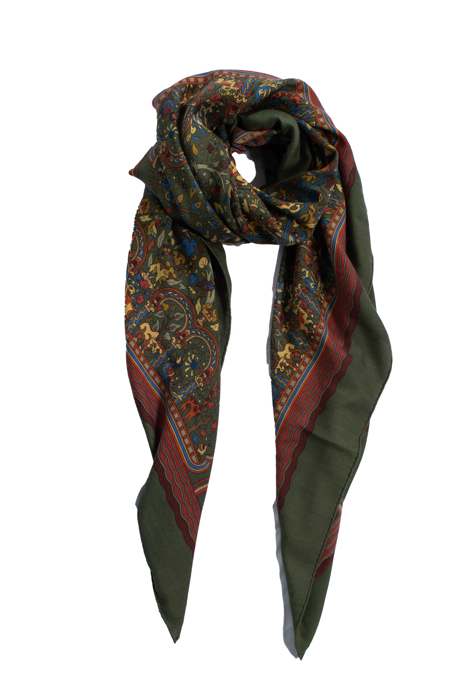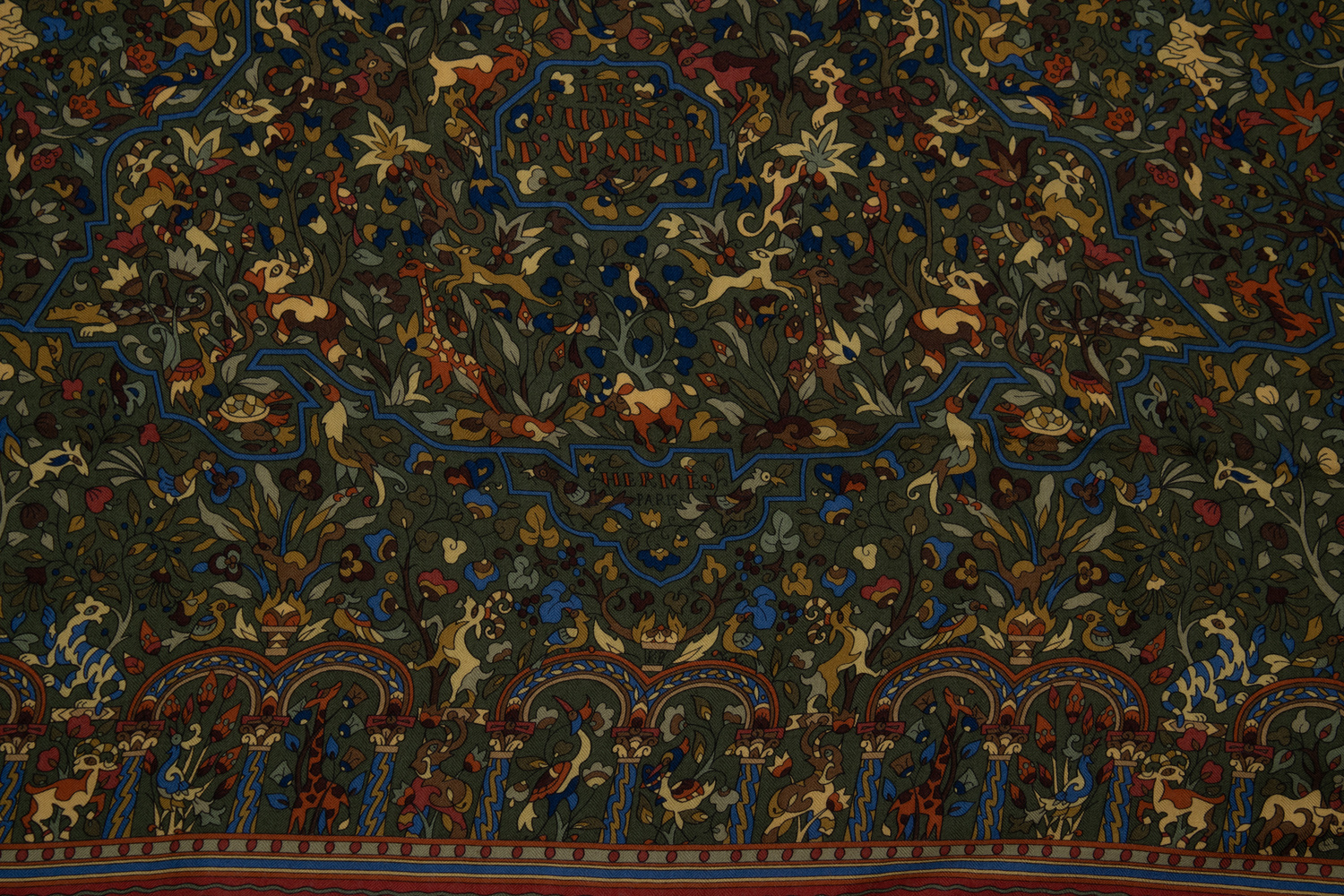 • Hermes, Les jardins d Armenie cashmere scarf in green. The item is in very good condition.