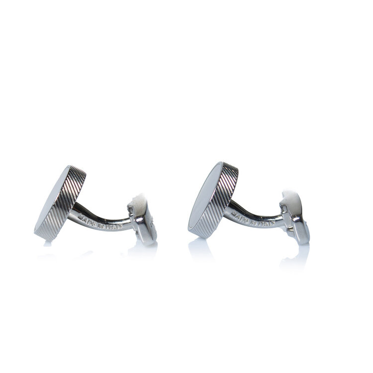 • Hugo Boss, silver and mother of pearl round cufflinks. The item is in very good condition.