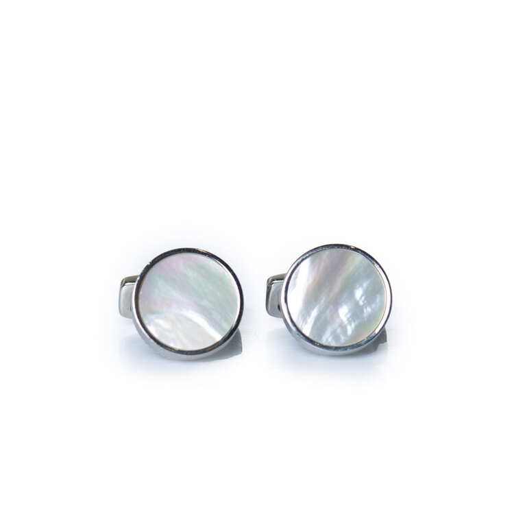 Hugo Boss, silver and mother of pearl round cufflinks. The item is in very good condition.