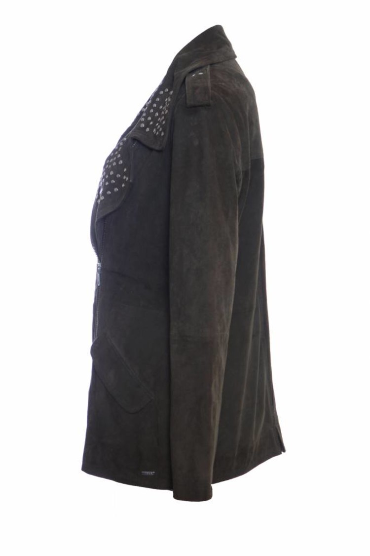• Ibana, olive green suede jacket with silver studs in size 38/M. This product is brand new/has never been worn.