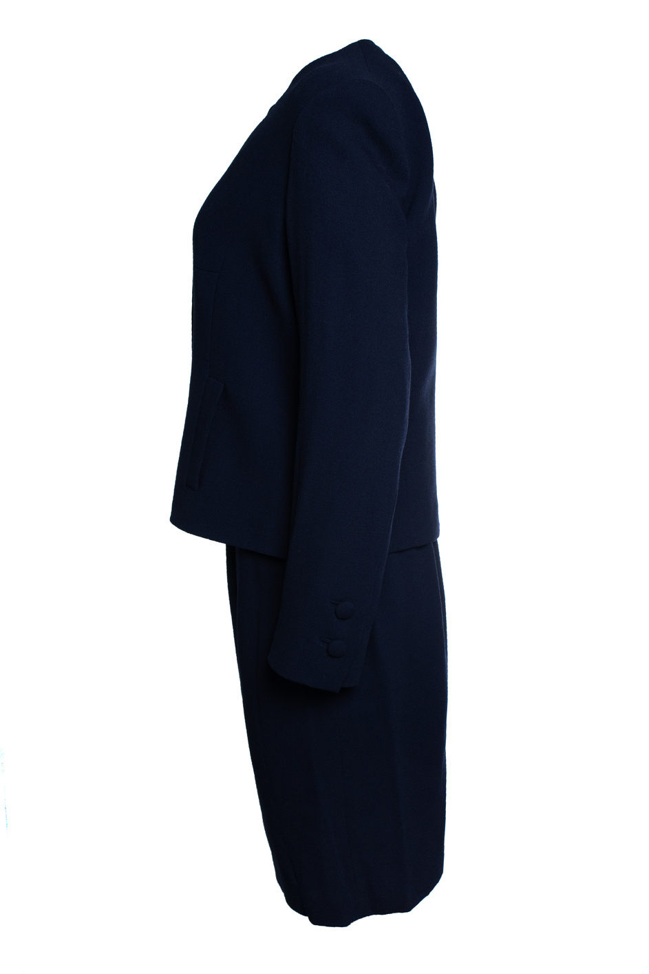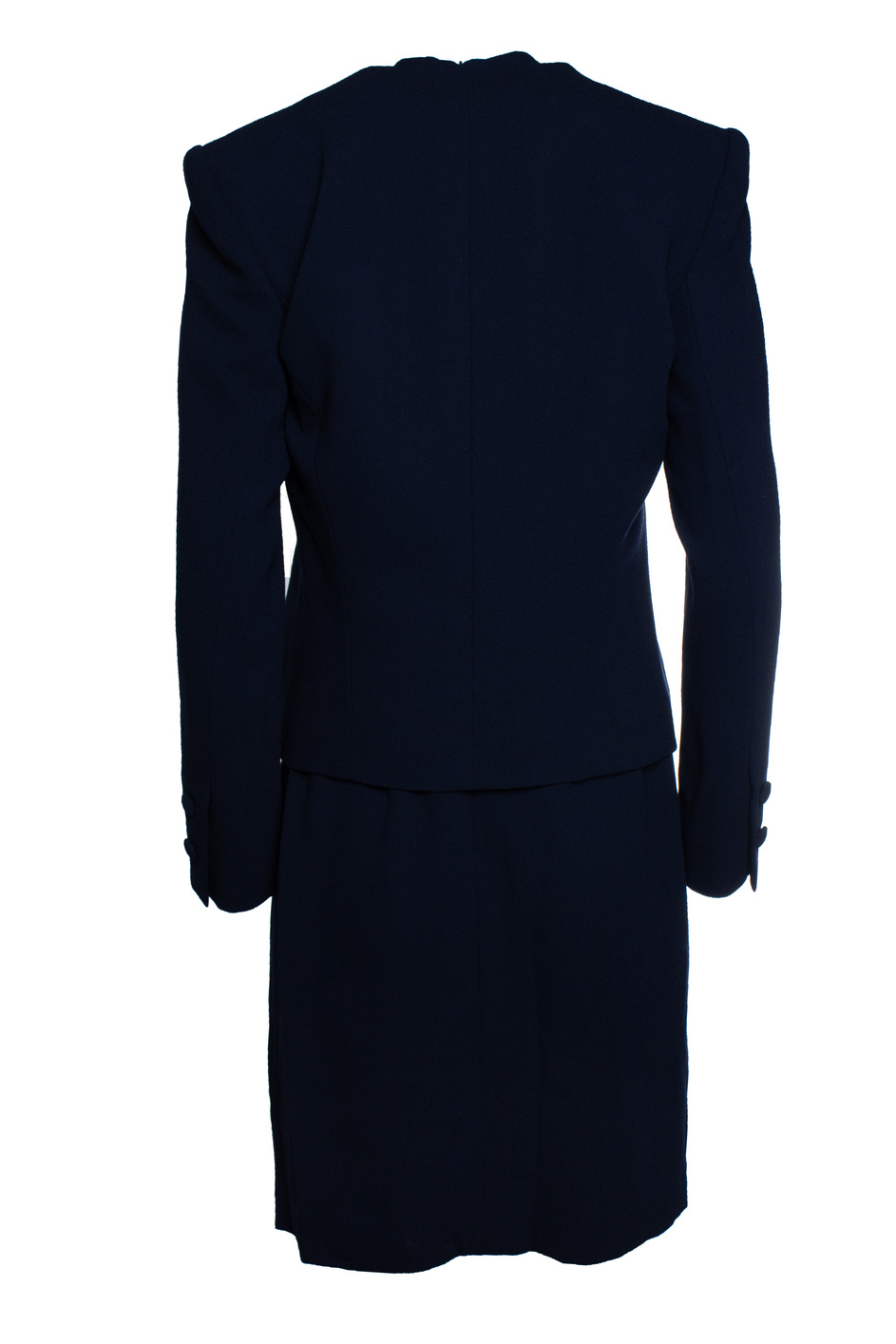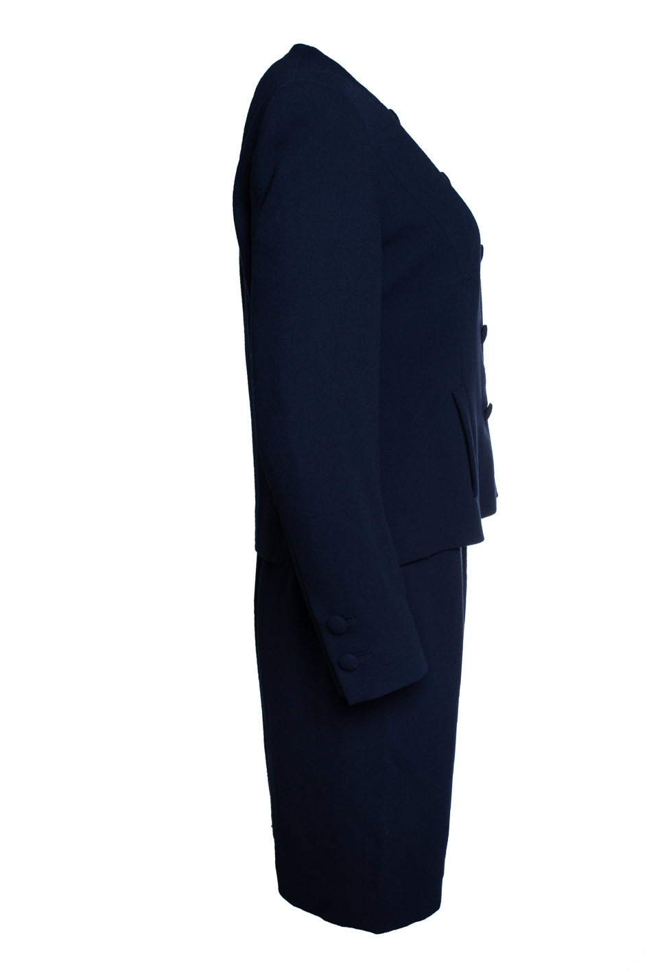 • Jan Taminiau, Two piece suit in dark navy. The item is in good condition. Comes with extra set of buttons and fabric.