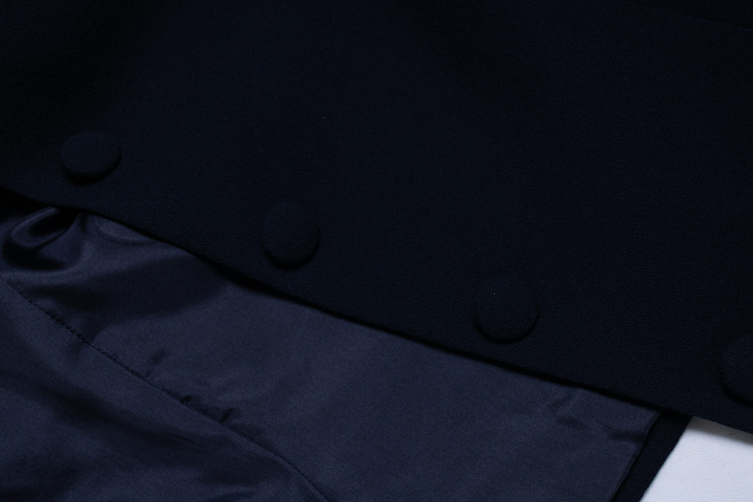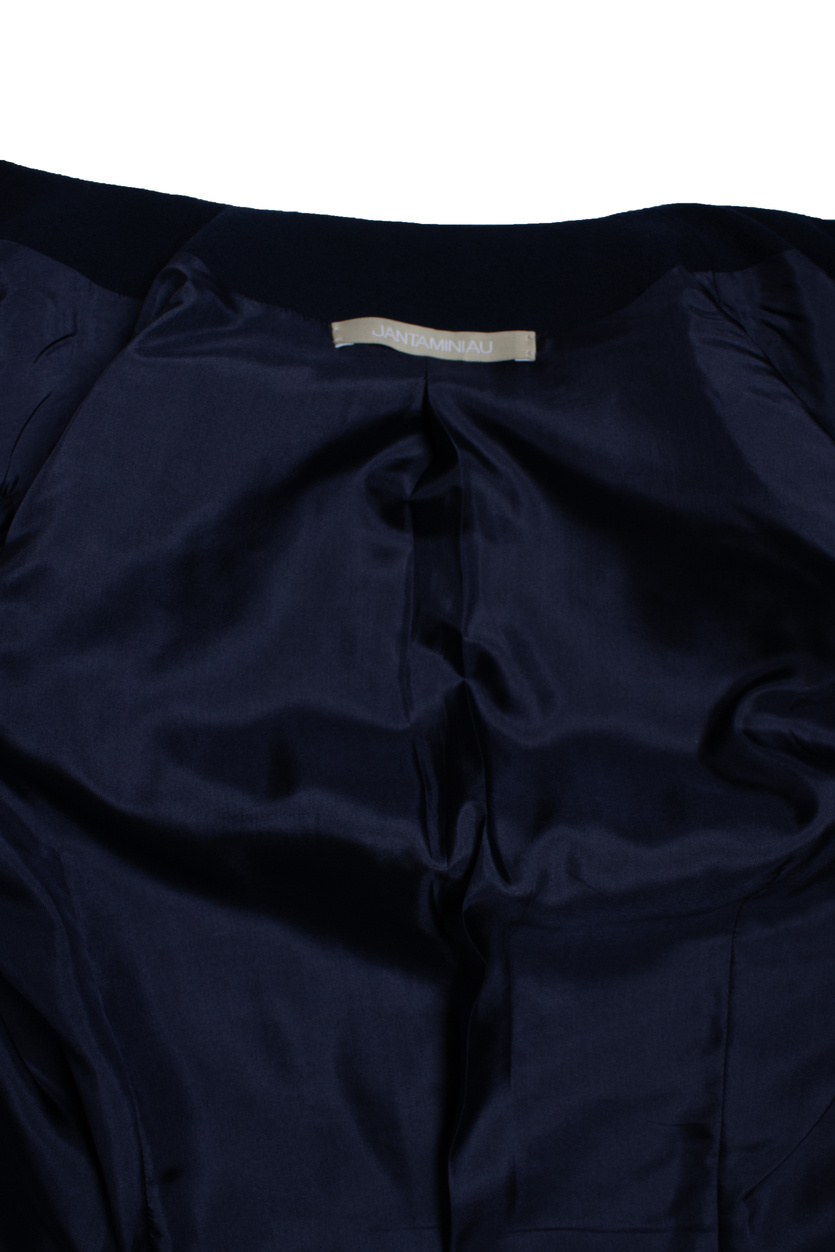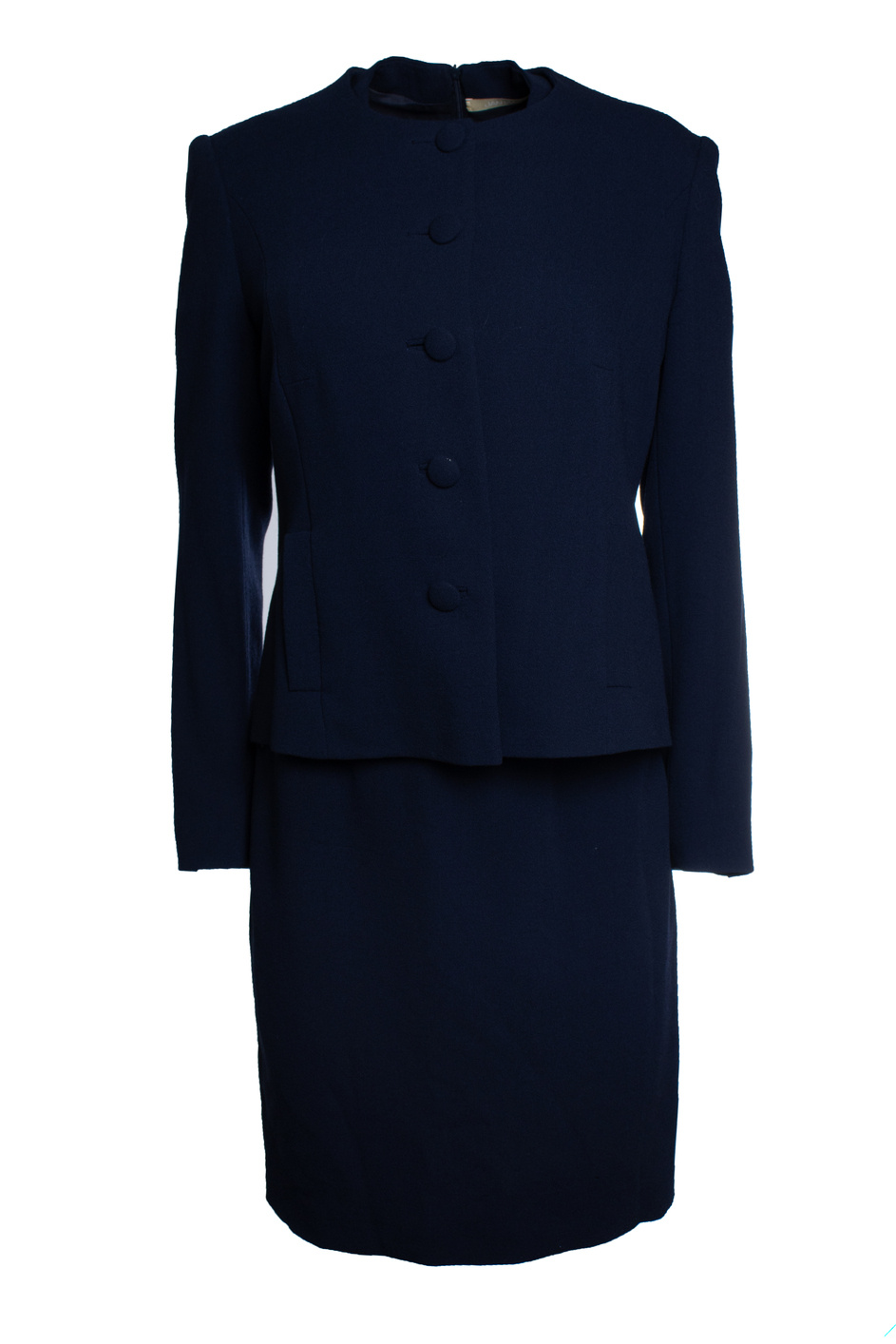 • Jan Taminiau, Two piece suit in dark navy. The item is in good condition. Comes with extra set of buttons and fabric.