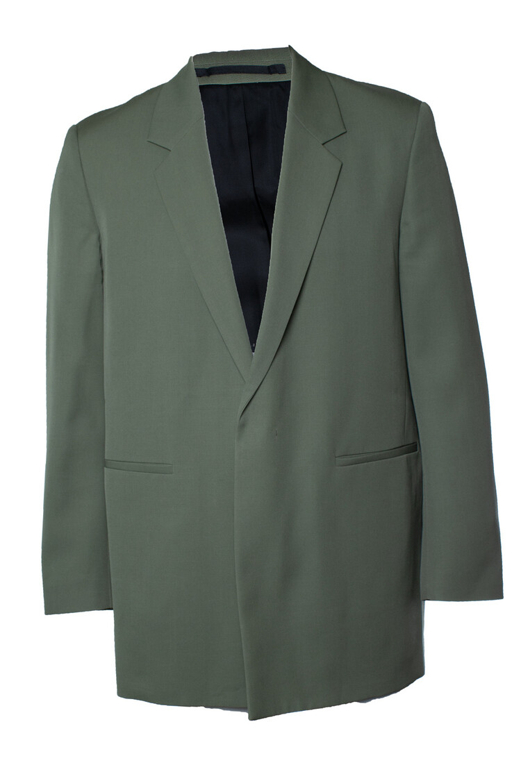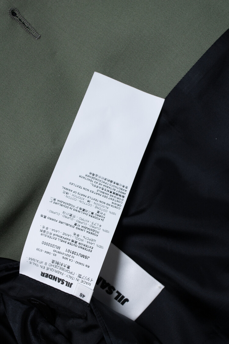 • Jil Sander, green blazer jacket. Light stains under the armpit further in good condition. Small stain on the left sleeve.