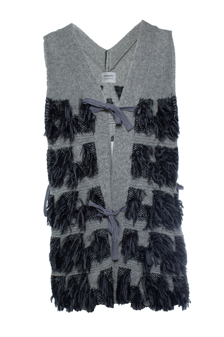 • Kimono x Nadeshiko, knitted sleeveless fringe vest in grey. The item is in very good condition.