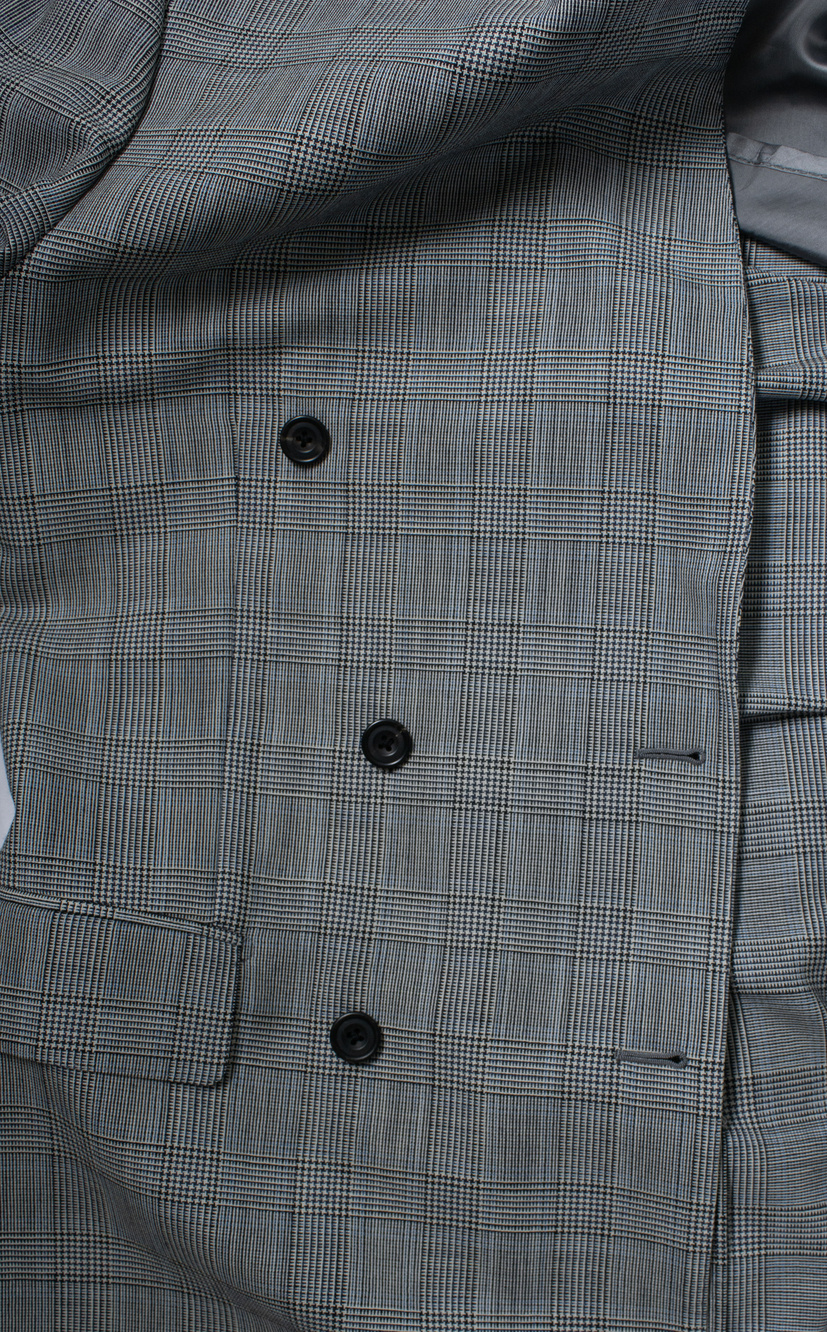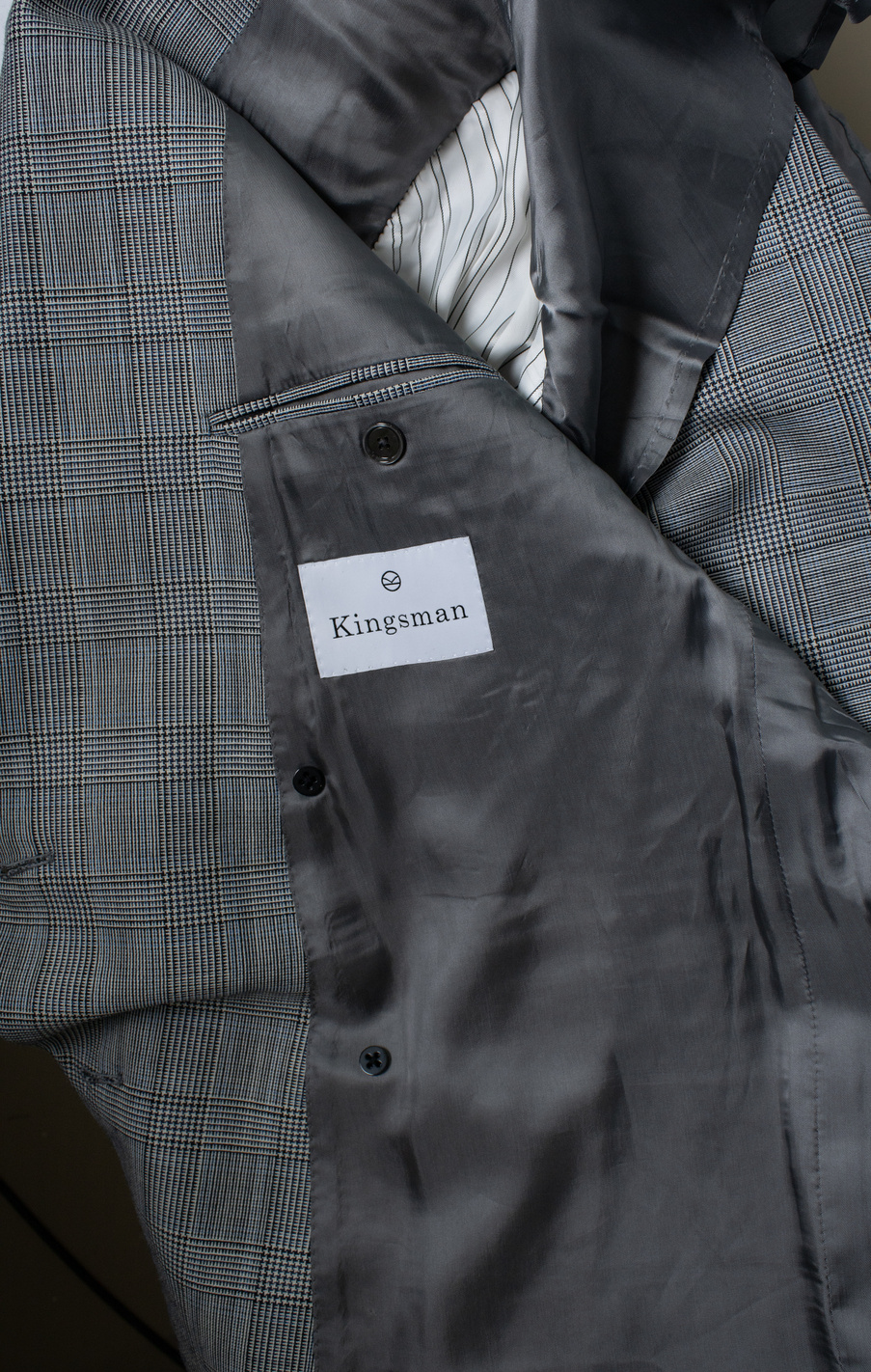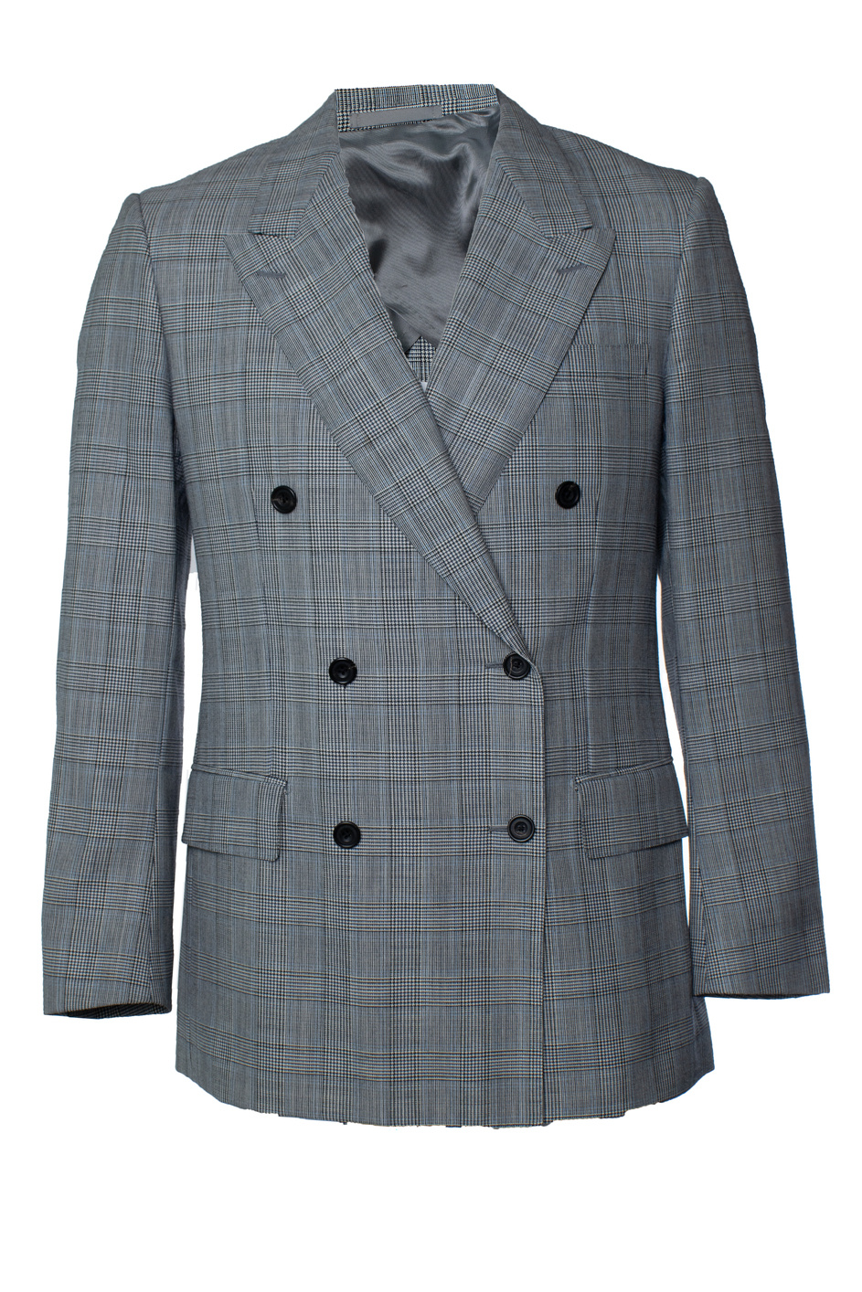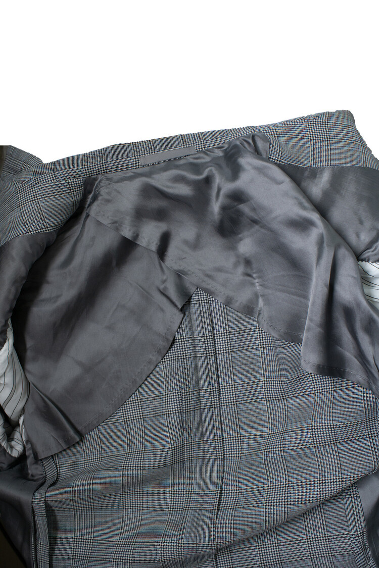• Kingsman, prince of whales blazer. The item has some discolouration in the armpits and some damage on the seems under the armpits.