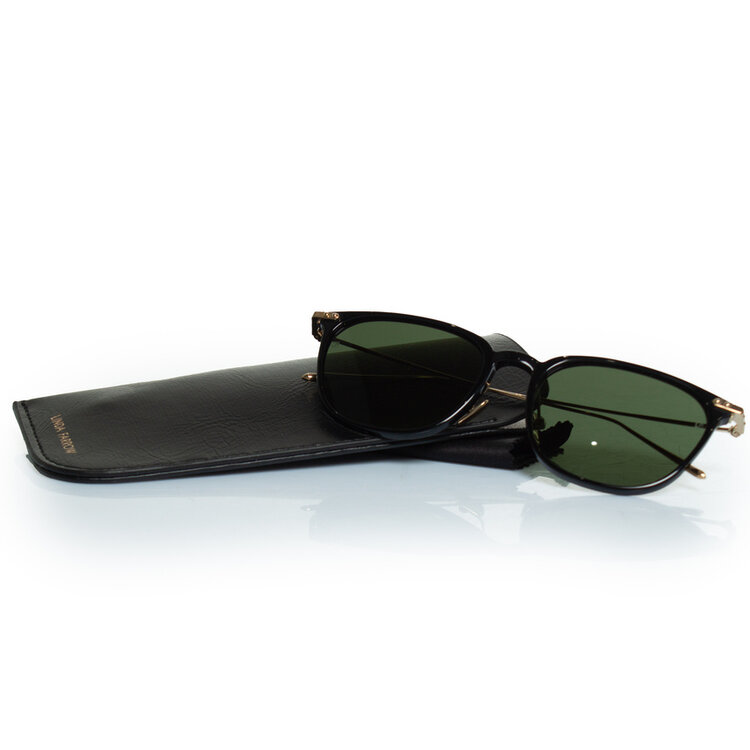 • Linda Farrow, 5712 black and gold sunglasses. The item is in very good condition and comes with case and dust cloth.