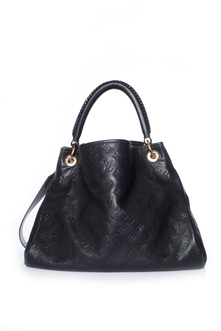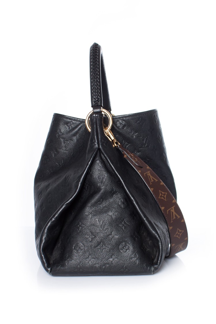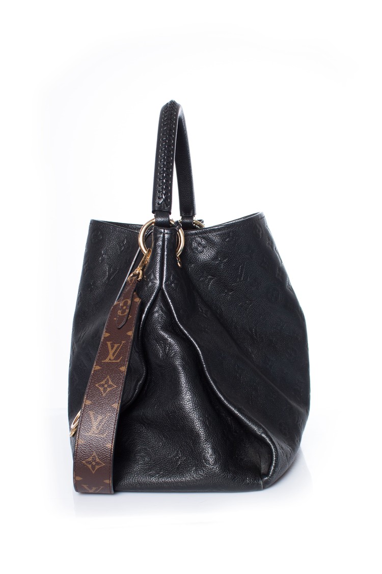 Crafted from their signature Monogram Empreinte leather, this bag features an open top that reveals a canvas lined interior, spacious enough to carry all your essentials. The bag is completed with a dangling logo-engraved charm, metal feet and a single rolled handle for easy carriage.