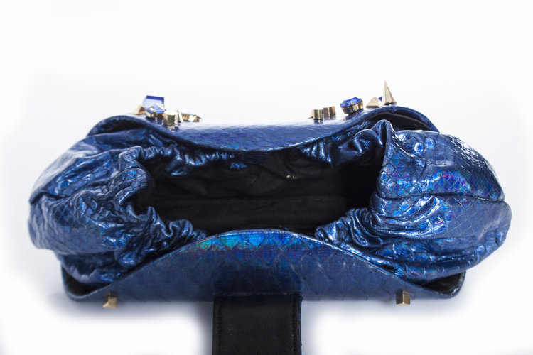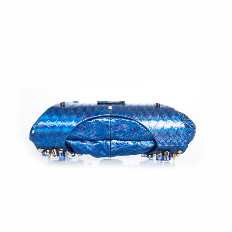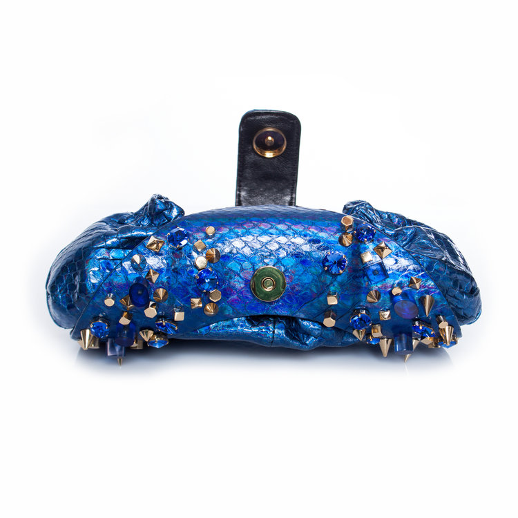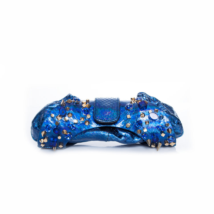 Maison Du Posh, champagne lamb leather clutch bag with 14k gold plated knuckle ring with swarovski stones. This product is brand new and comes with a dustbag.