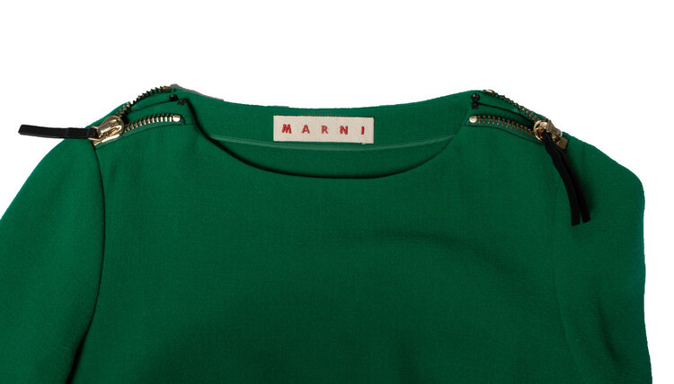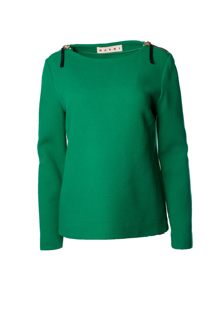 • Marni, green wool top with zippers on the shoulders. The item is in good condition.