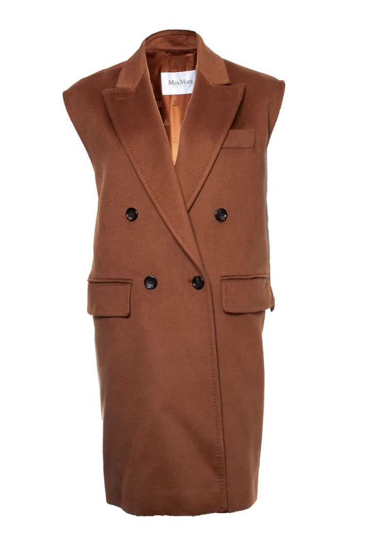 • Max Mara, Sleeveless cashmere blazer coat in cognac. The item is in very good condition and comes with box.