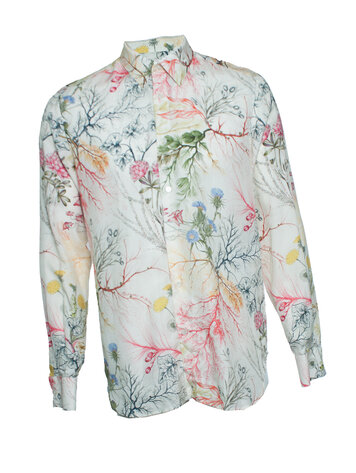 Alexander McQueen, White shirt with multi floral print. The item is in very good condition.
