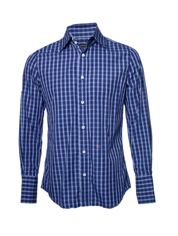 Lanvin, Checkered dark blue with white shirt with blue trim. The item is in very good condition.