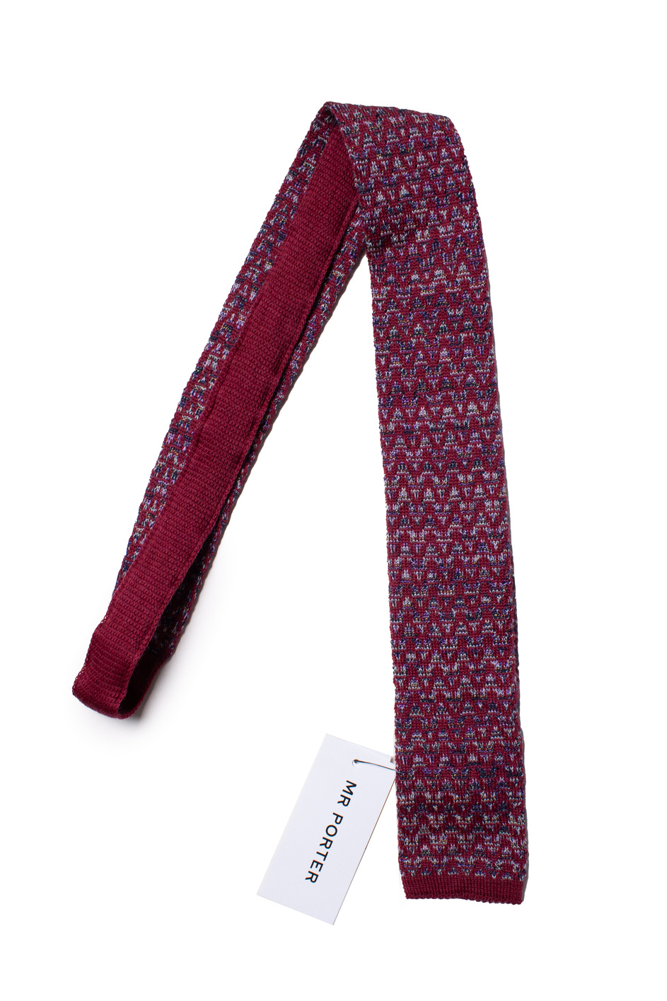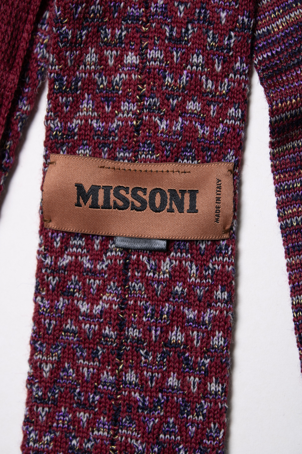 • Missoni, knitted zig zag printed tie in pink. The item is new with tag.