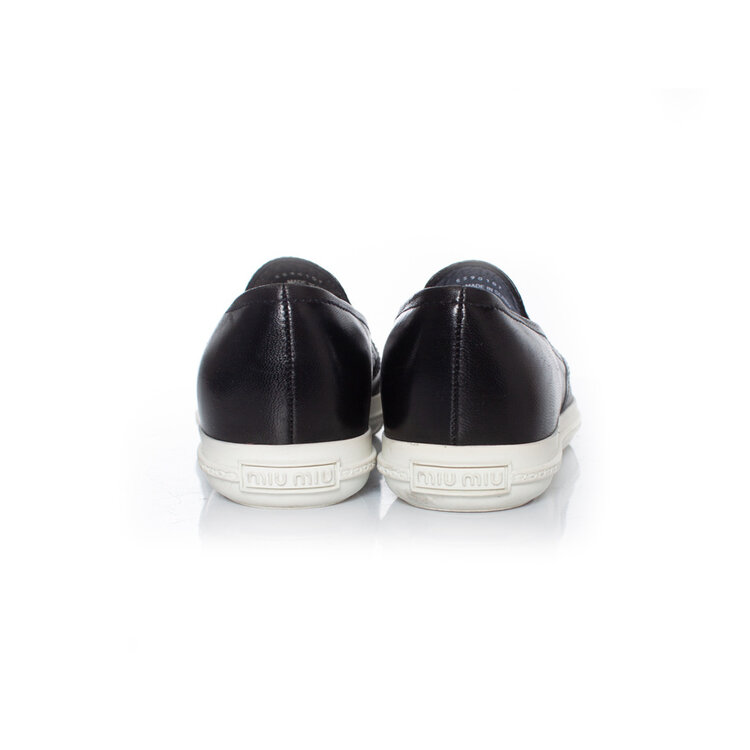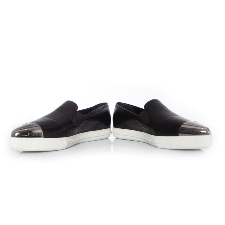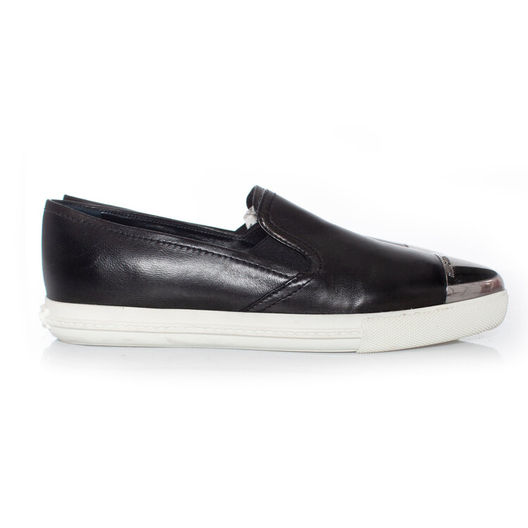 • Miu Miu, slip on sneakers in black leather with metal toe. The item is in very good condition.