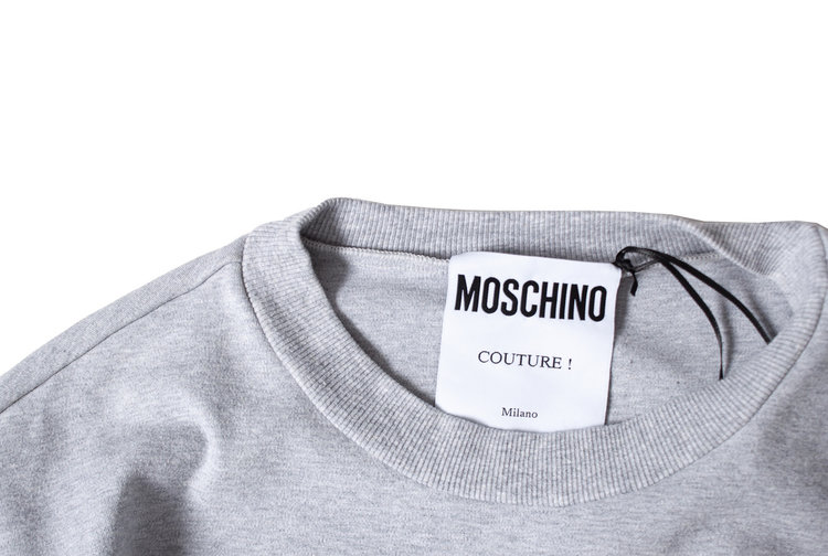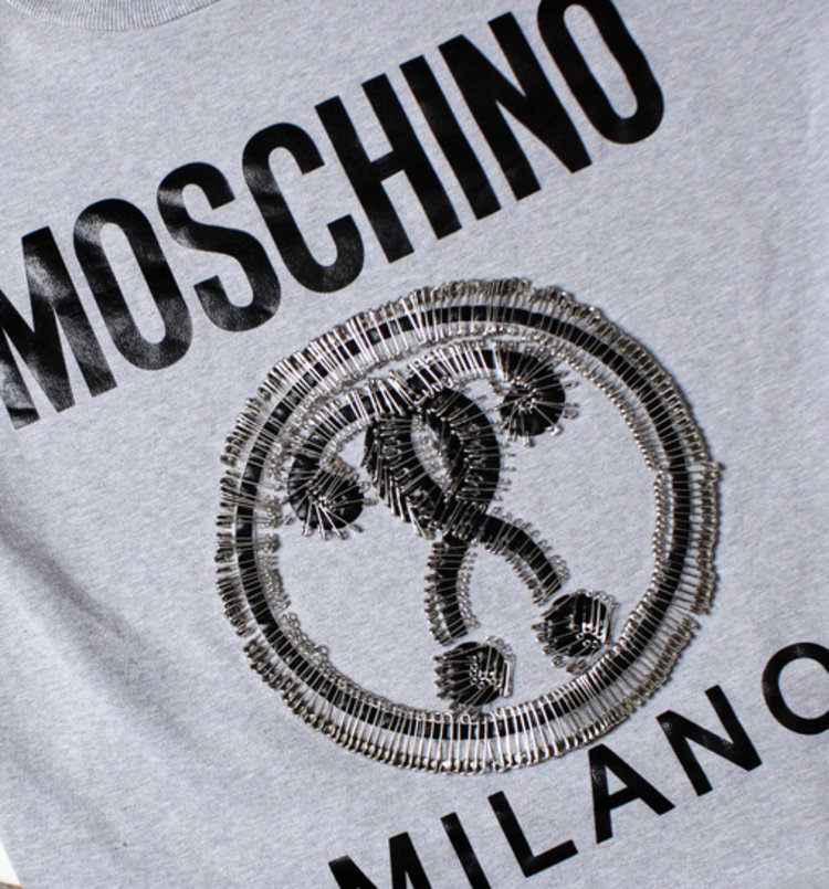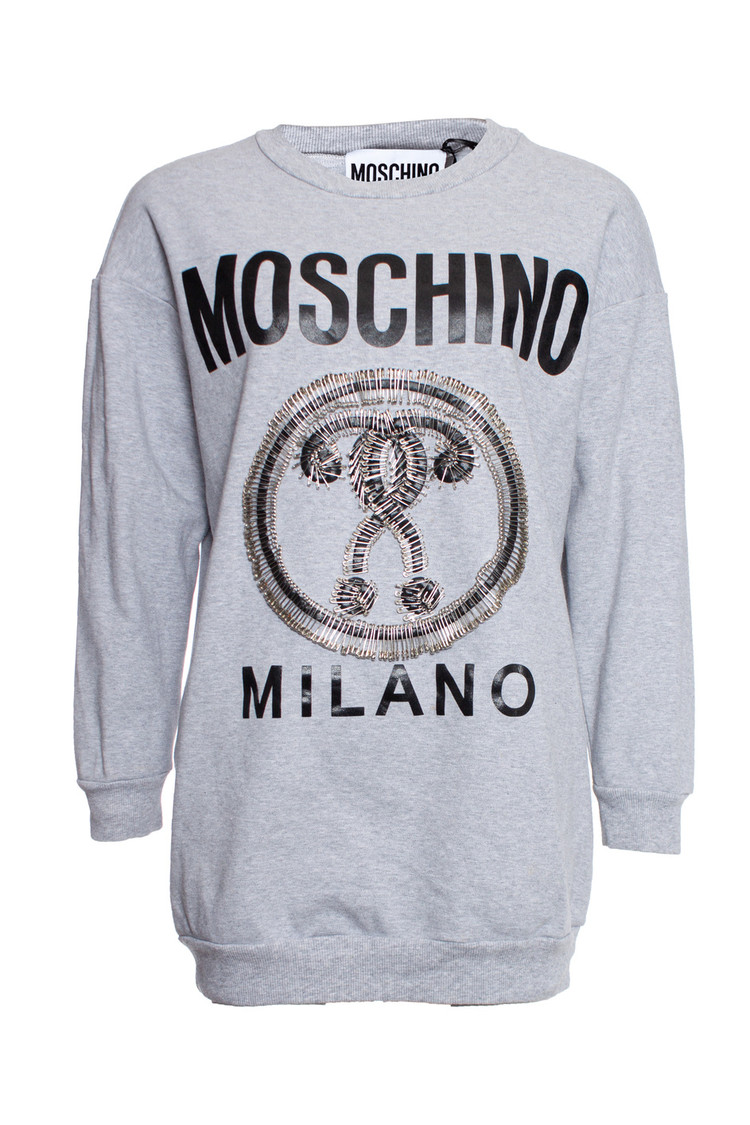 • Moschino, Grey sweater with safety-pins. This item is in good condition.