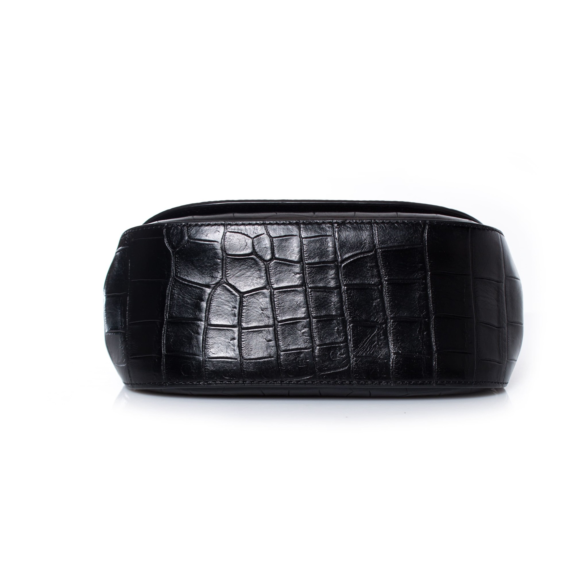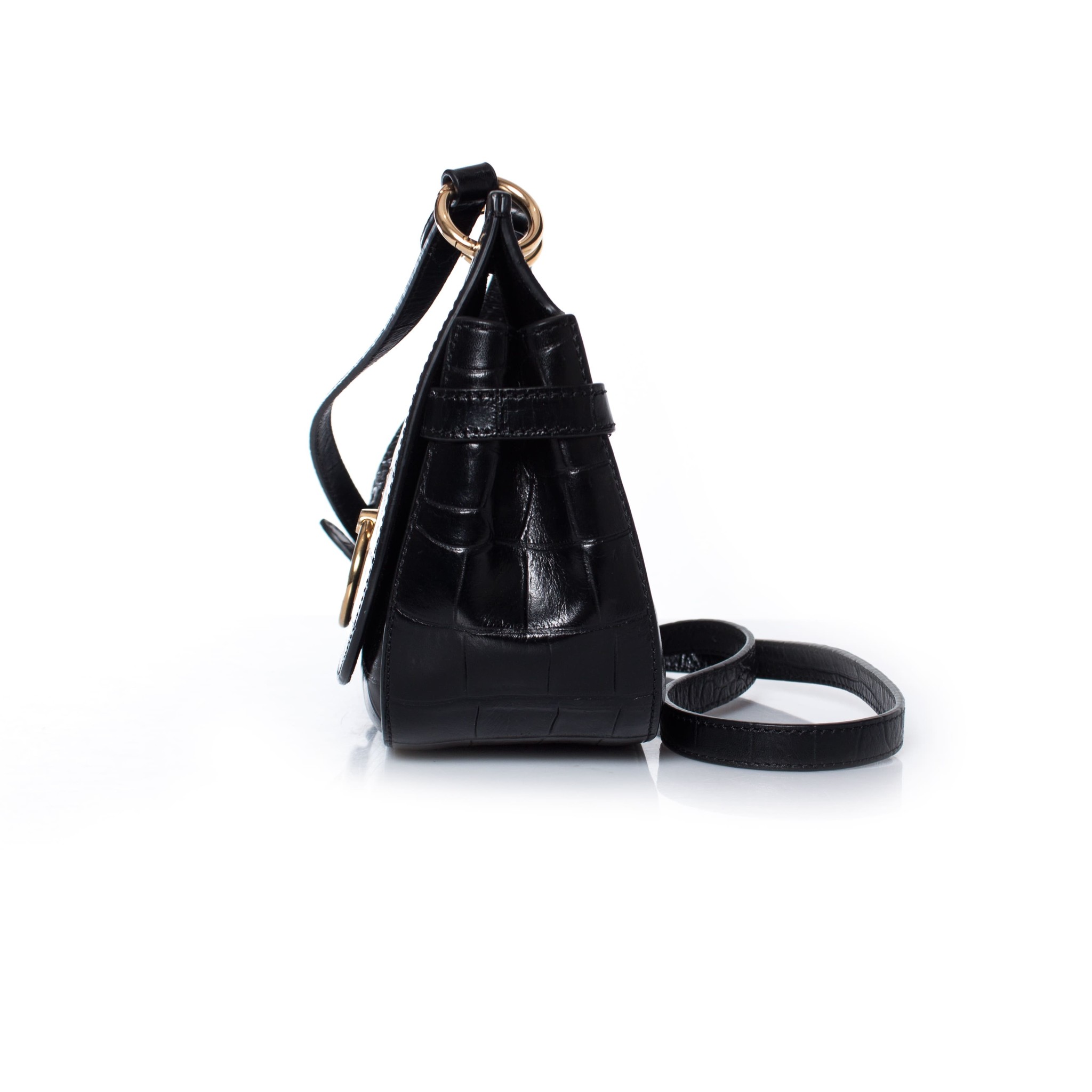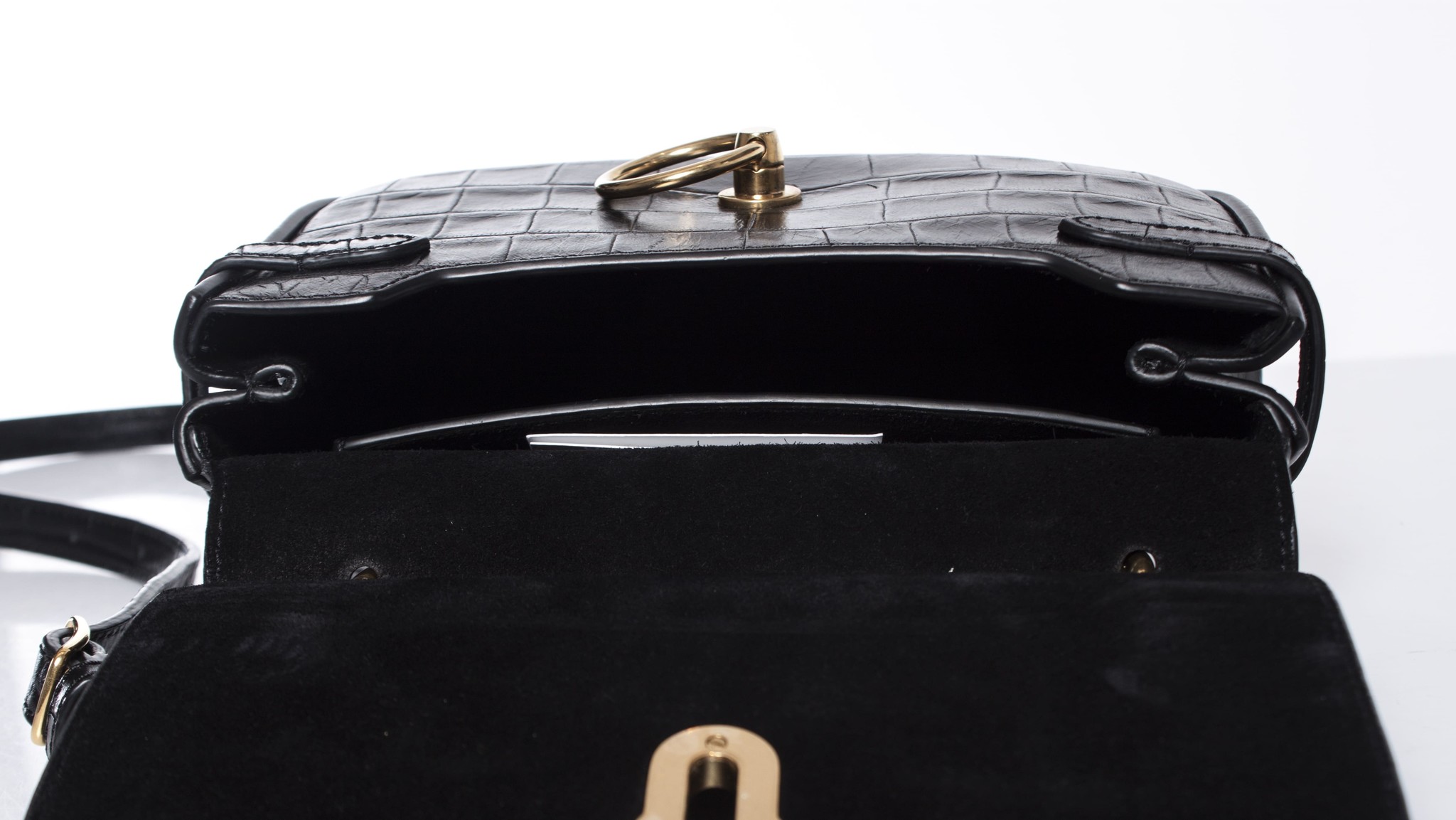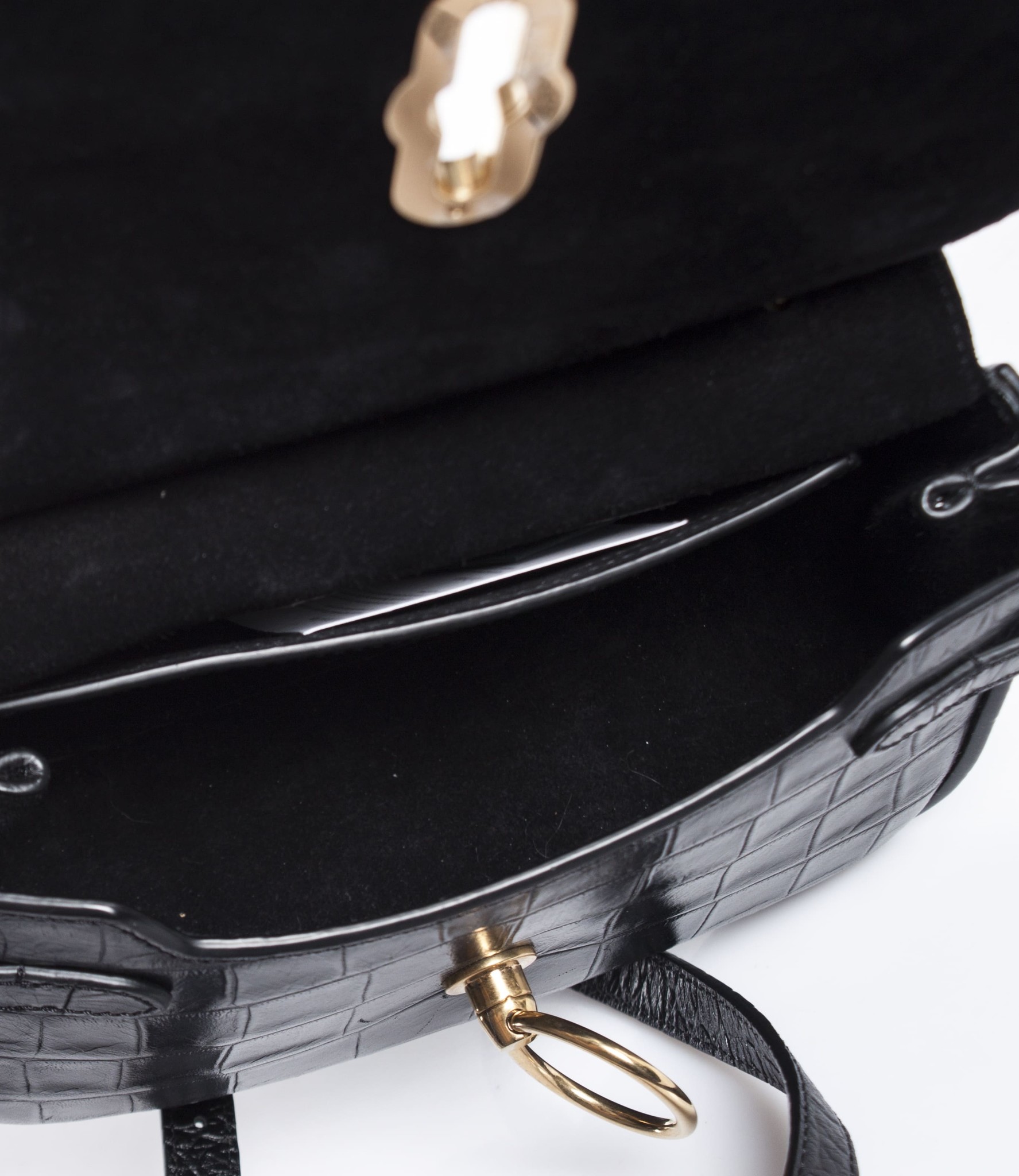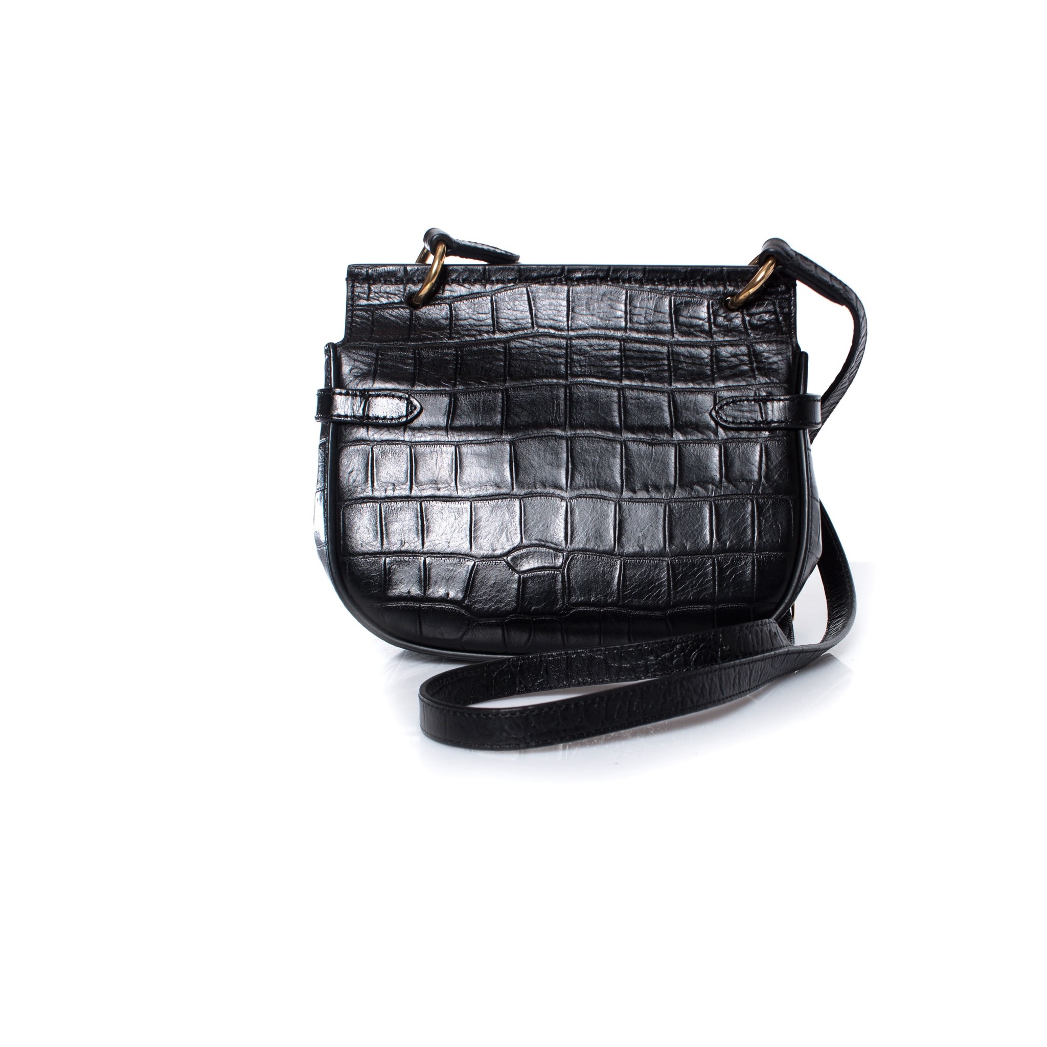 • Mulberry, Small Amberley Satchel In Black Croc-embossed Nappa. This piece has been worn little and is in very good condition. Comes with dustbag and a copy of the receipt. Sticker is still attached on the closing of the bag.